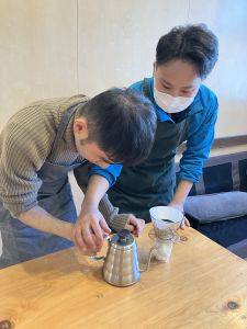 足羽更生園 2025.04.08 アフォガード作ったよ 欅寮では先日寮行事で特製アフォガードを作りました!! アフォガードは本来アイスにエスプレッソをかけるのですが、今回はハンドドリップで抽出したコーヒーをかけて楽しみました!!(^^)/ 濃いめの抽出を意識してじっくり丁寧に注いでいきました! 皆さん上手にドリップしています(>_<) 抽出されたコーヒー液を眺めています。 バニラにコーヒーが溶けていくグラデーションが美しいですね。。。( 一一) とても美味しかったみたいで、至福のひと時を過ごせました!!!