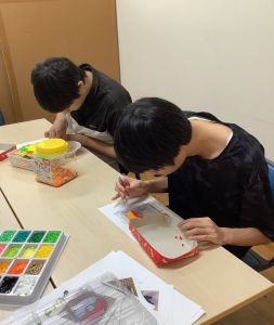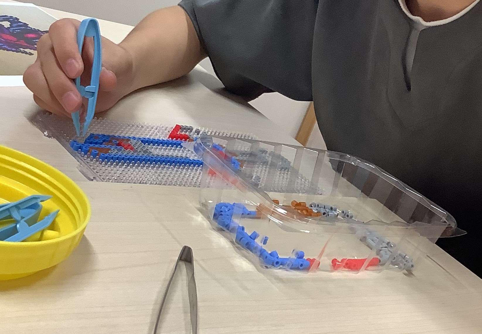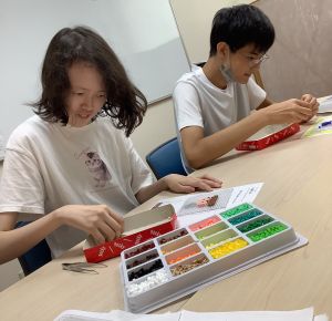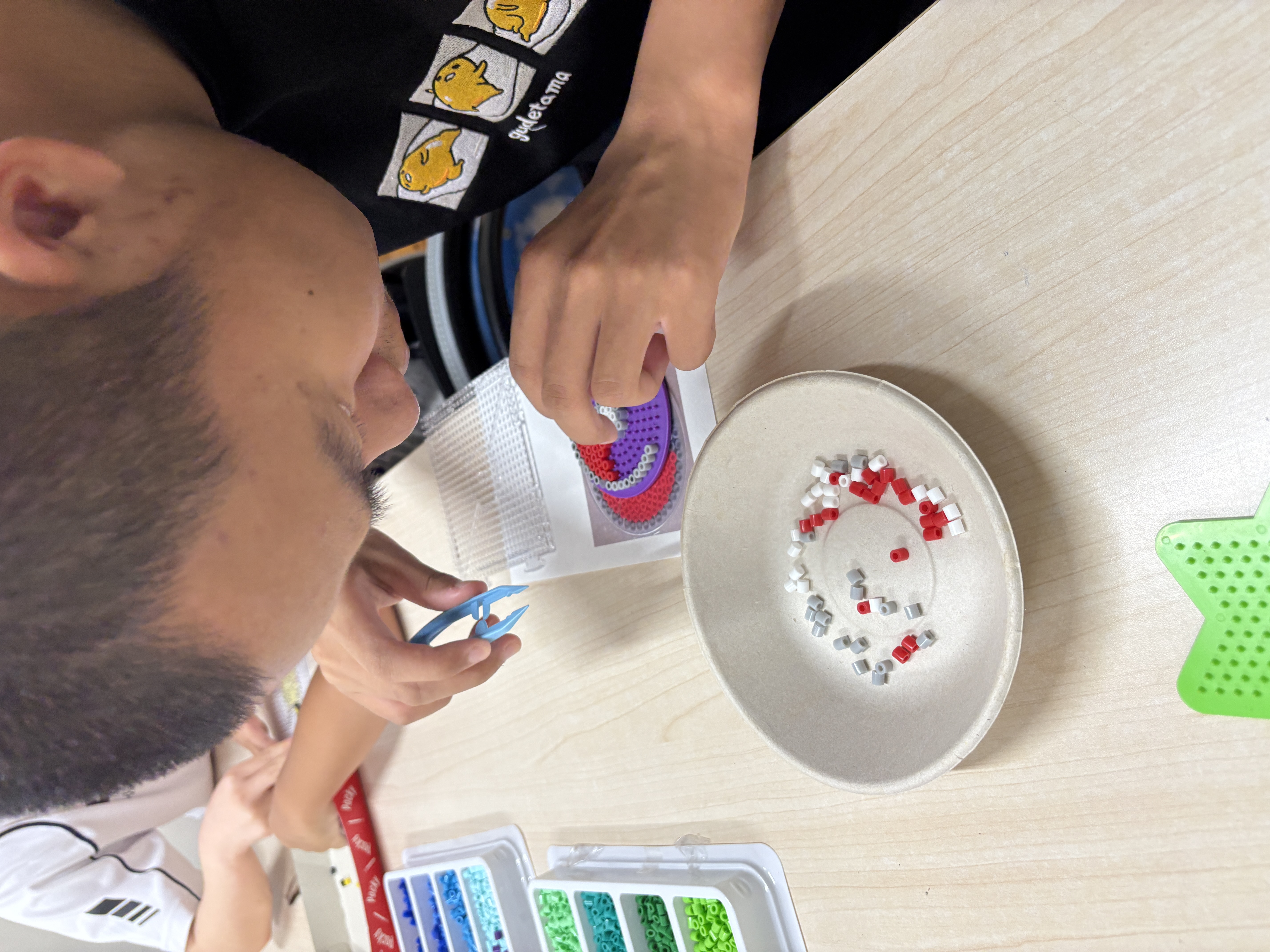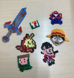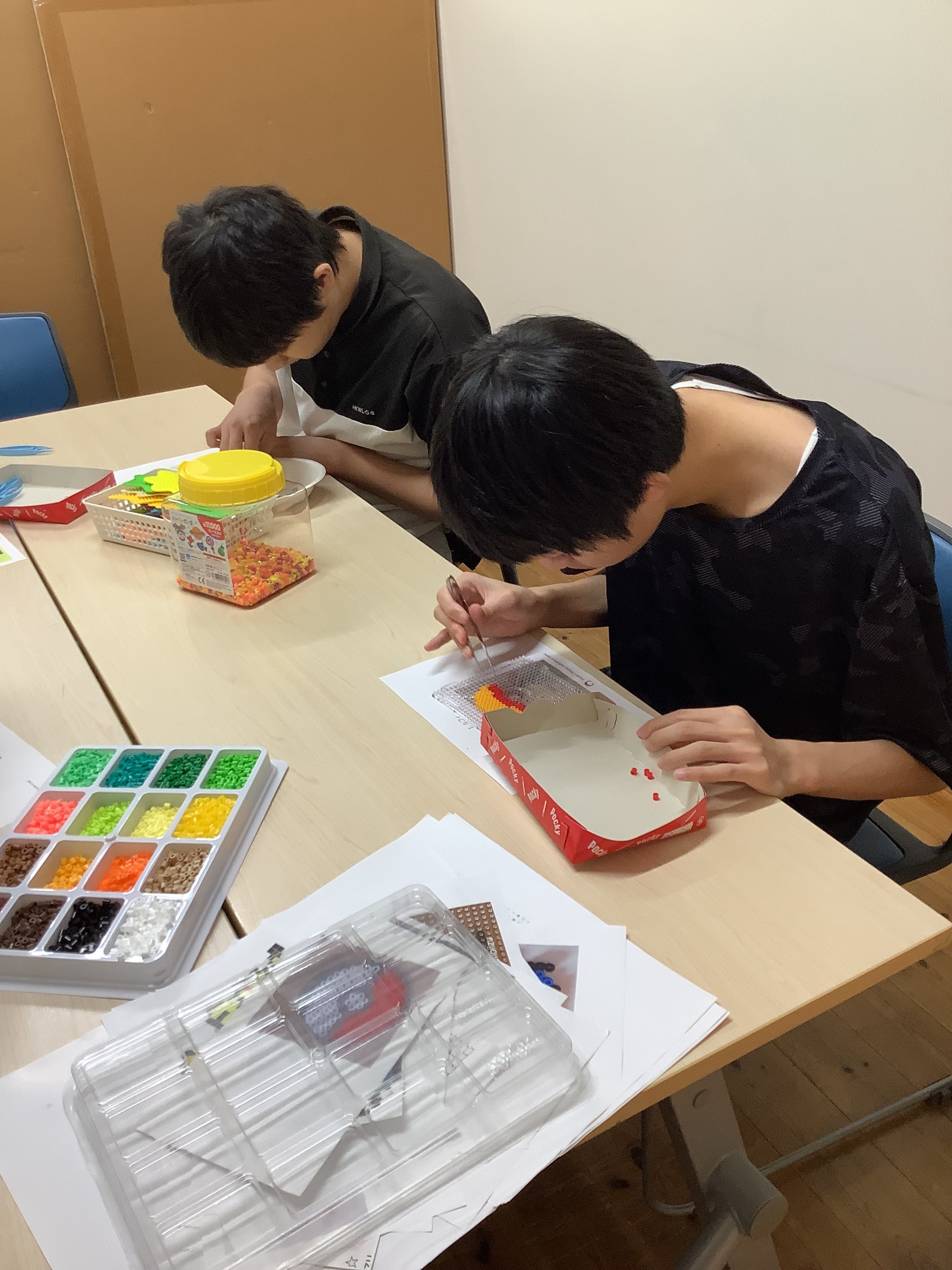 小さいビーズを並べて自分達が好きなキャラクター等を作っていました。