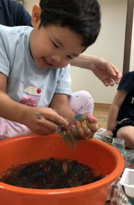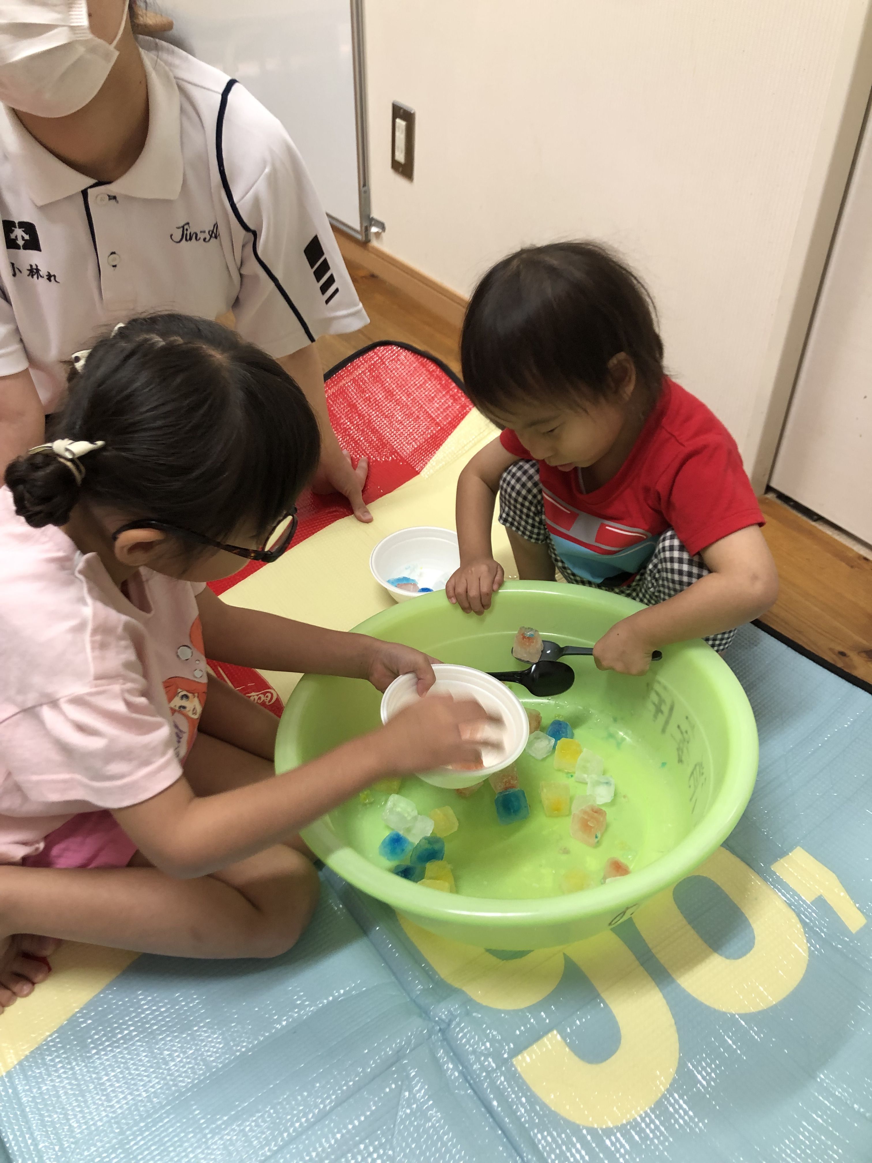 氷や寒天などを使って、夏ならではの冷たい感触を楽しみました!