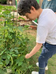 足羽更生園 2025.10.01 ささげの収穫(^^)/ 椢寮のプランターで育てていた豆の一種のささげを収穫しました。 ささげも大きく育ち、みんなで一つ一つ丁寧に採りました!(^^)! 夕食時に収穫したささげを茹でて、みんなで食べました。 美味しかったです(*^▽^*)