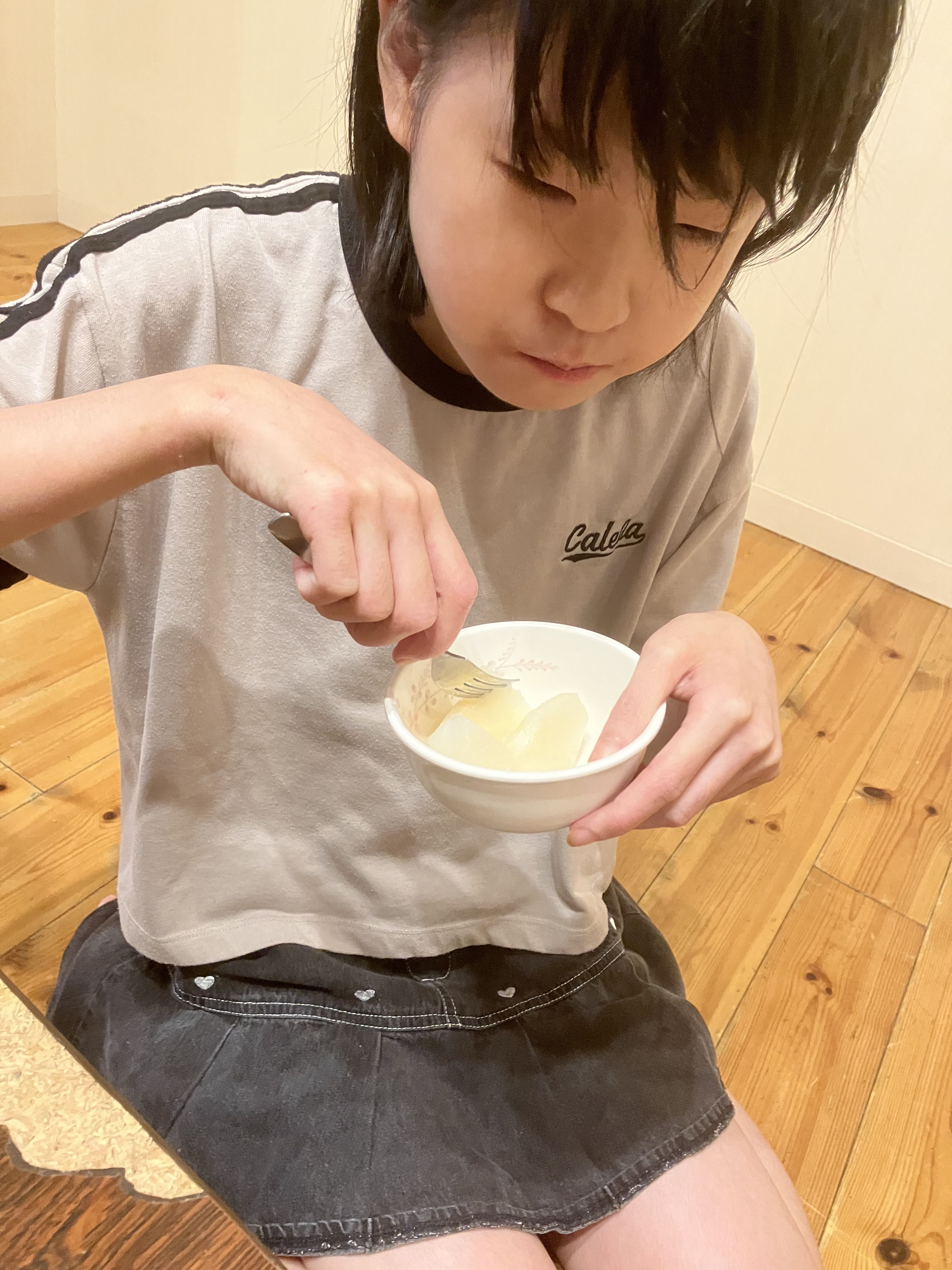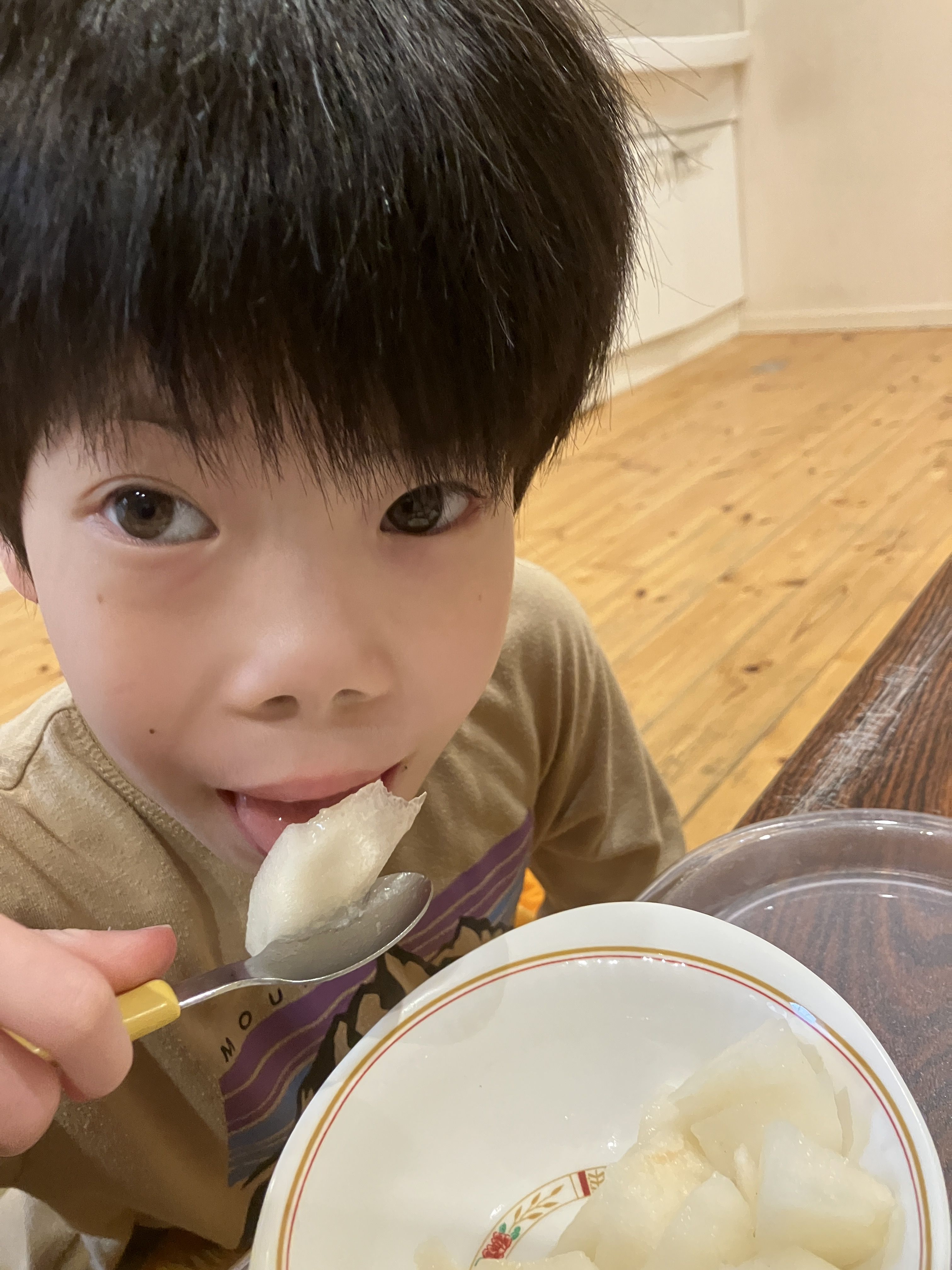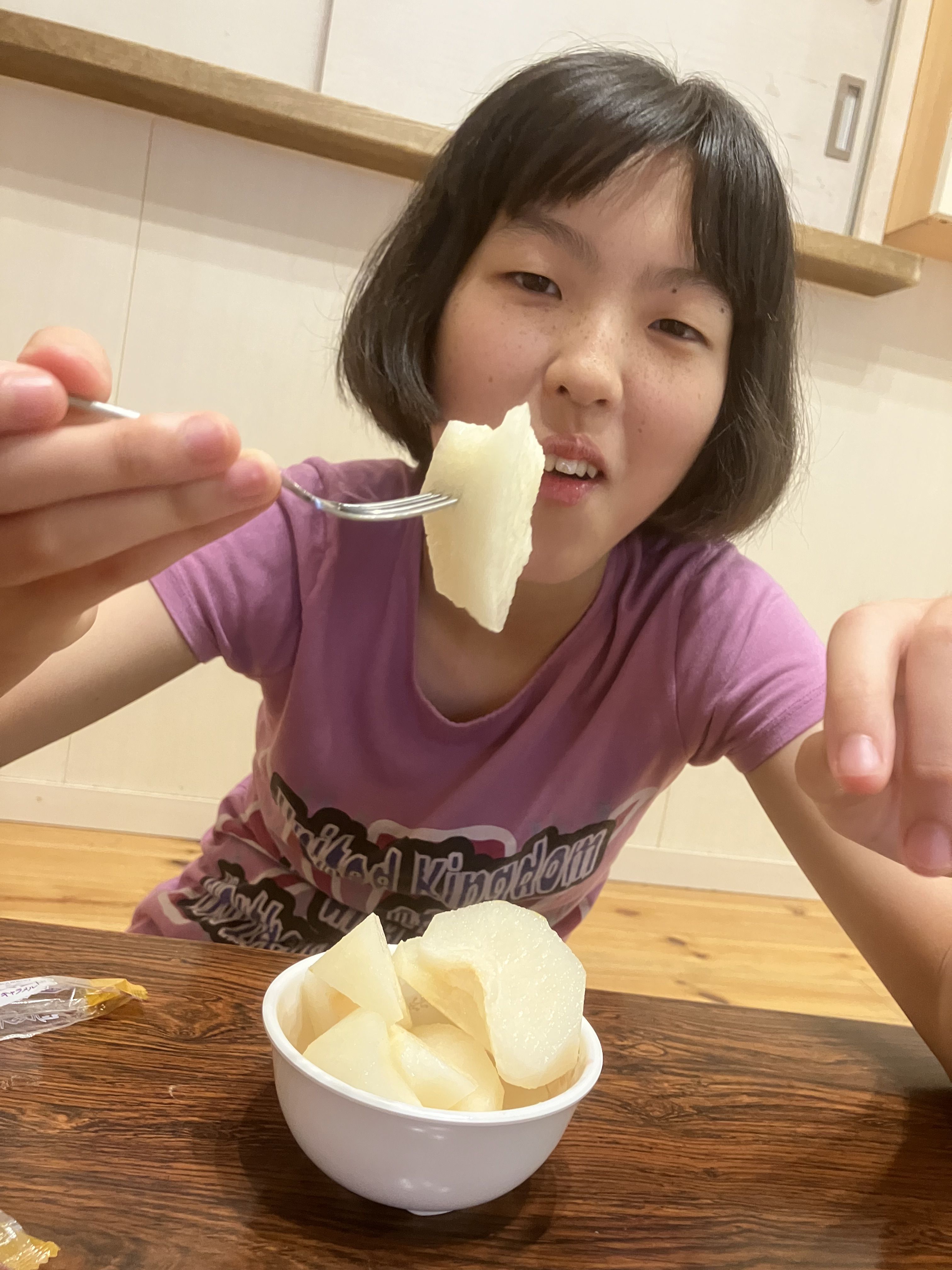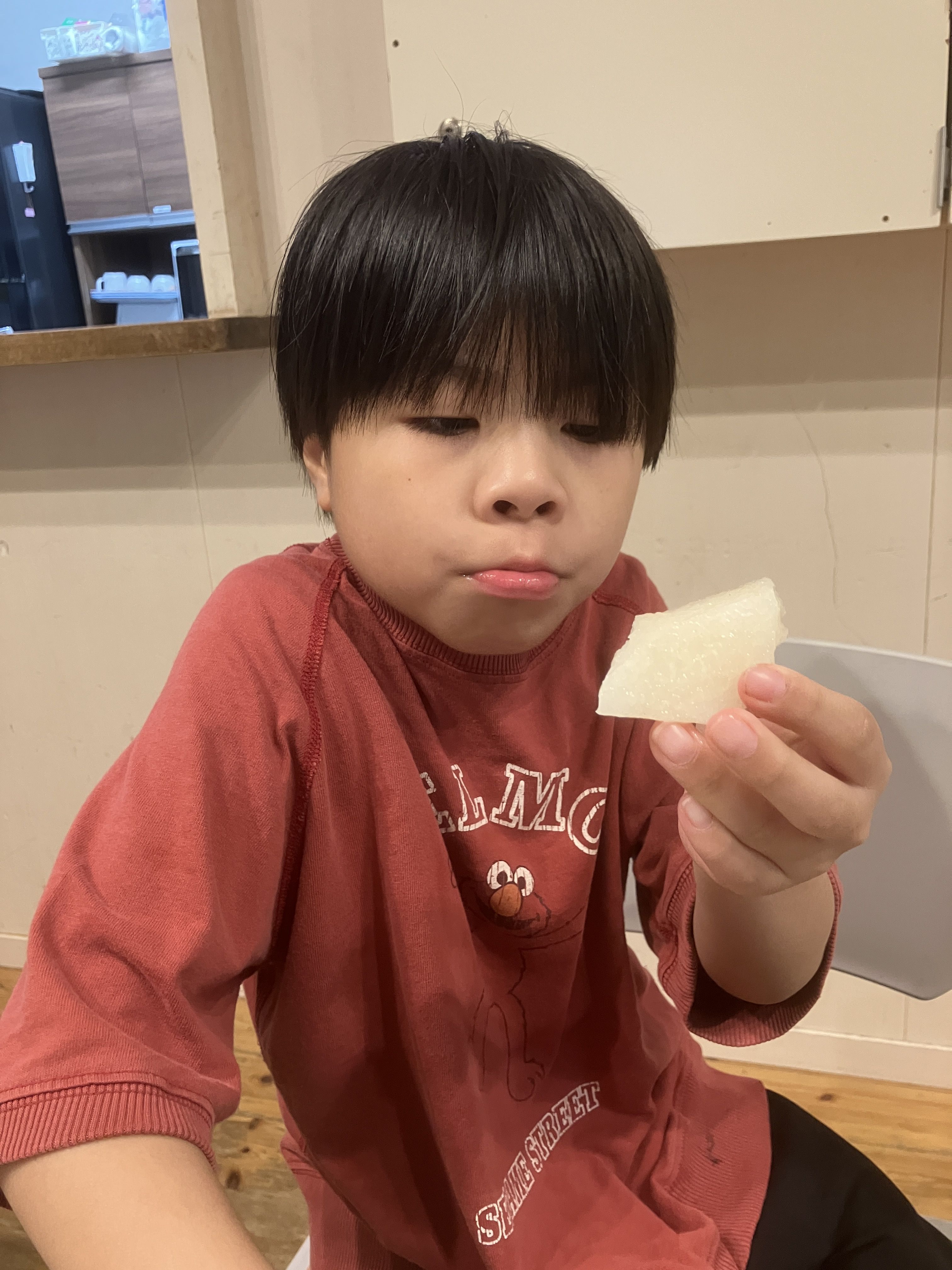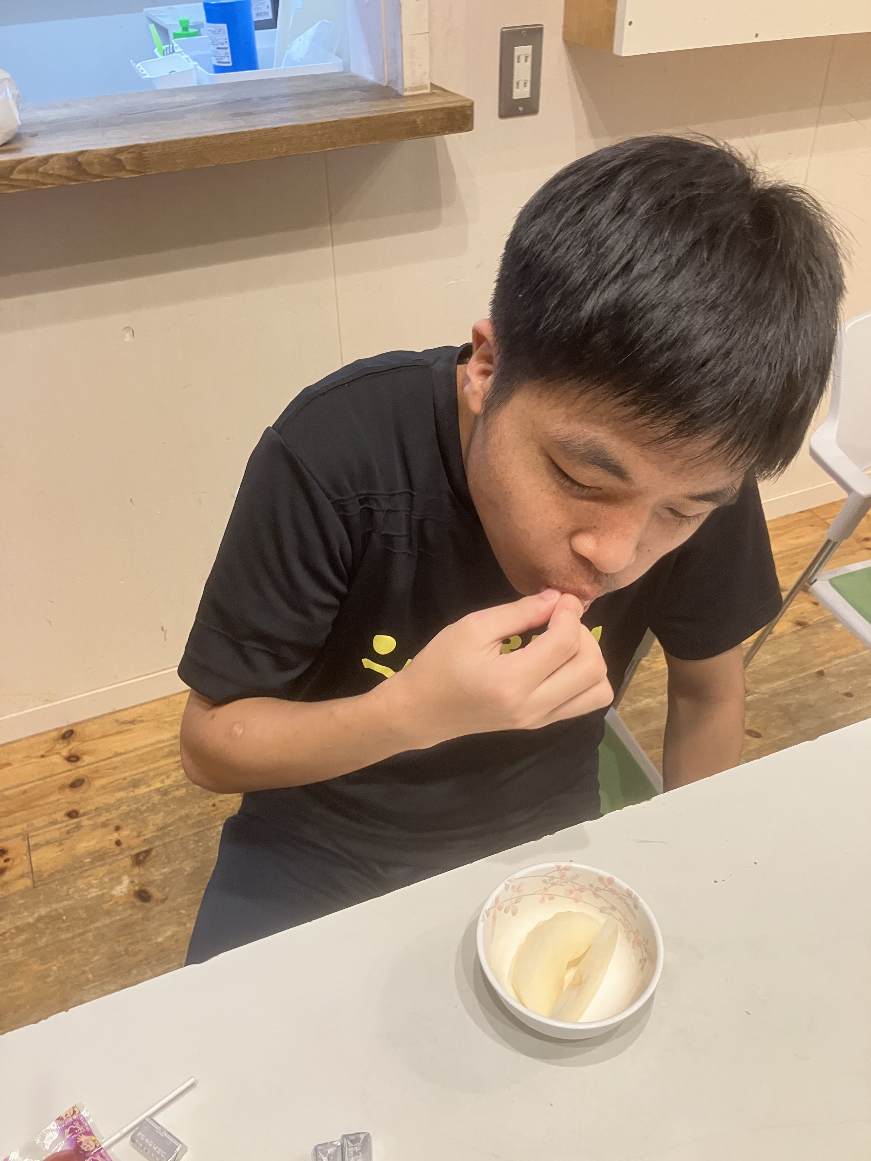 足羽学園 2025.10.06 あまーい梨いただきました!🍐 近ちゃんファームのみなさん!毎年、美味しい梨をいただきありがとうございます!! 利用者様みなさん美味しすぎてほっぺたがとろけ落ちそうです・・💛 素敵なにっこり笑顔もいただきました!!