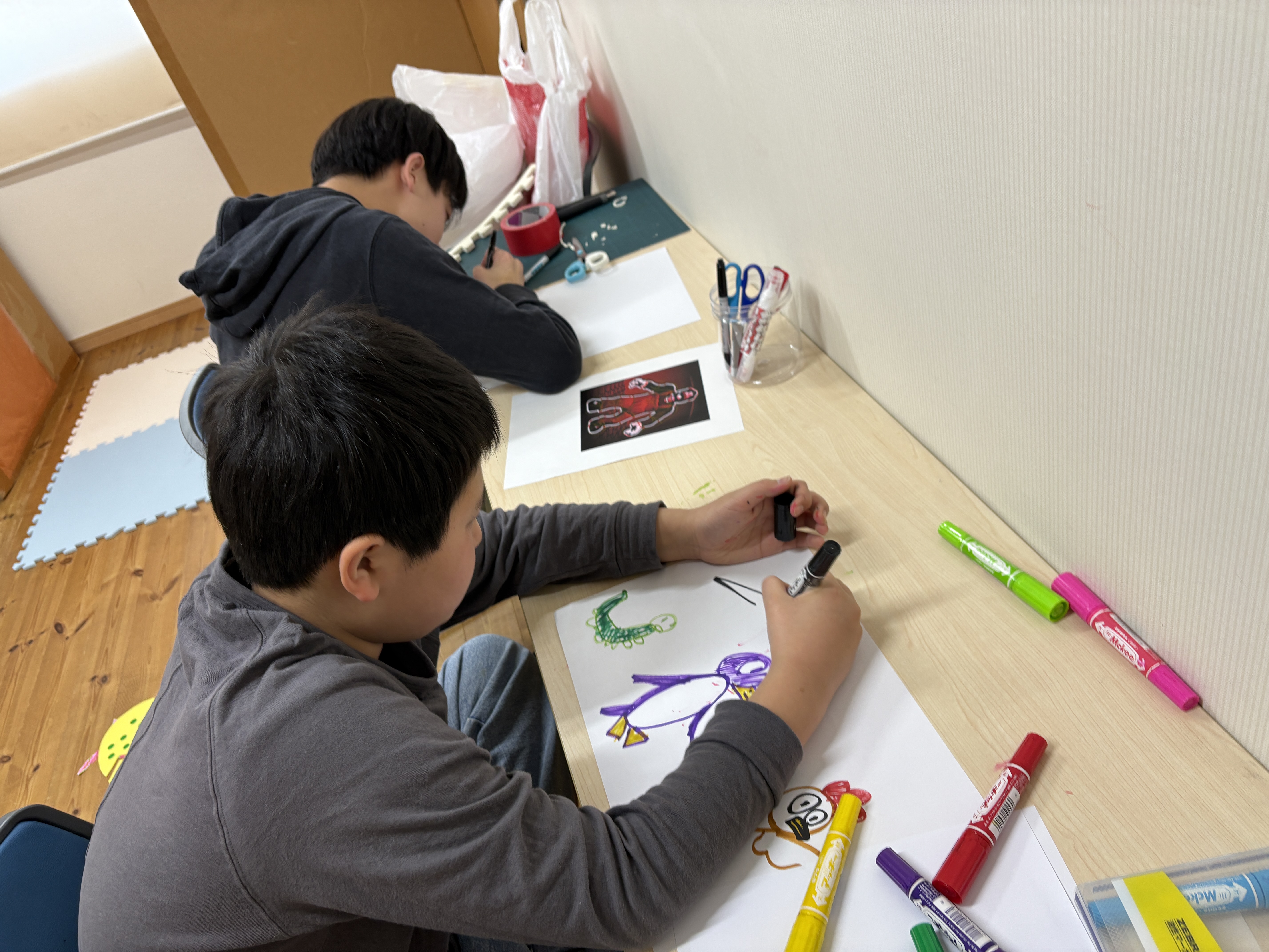 オリジナルの絵本を作ったり、ロボットや人形を廃材での工作やブロック、粘土等色んな形で表現し、製作しています。