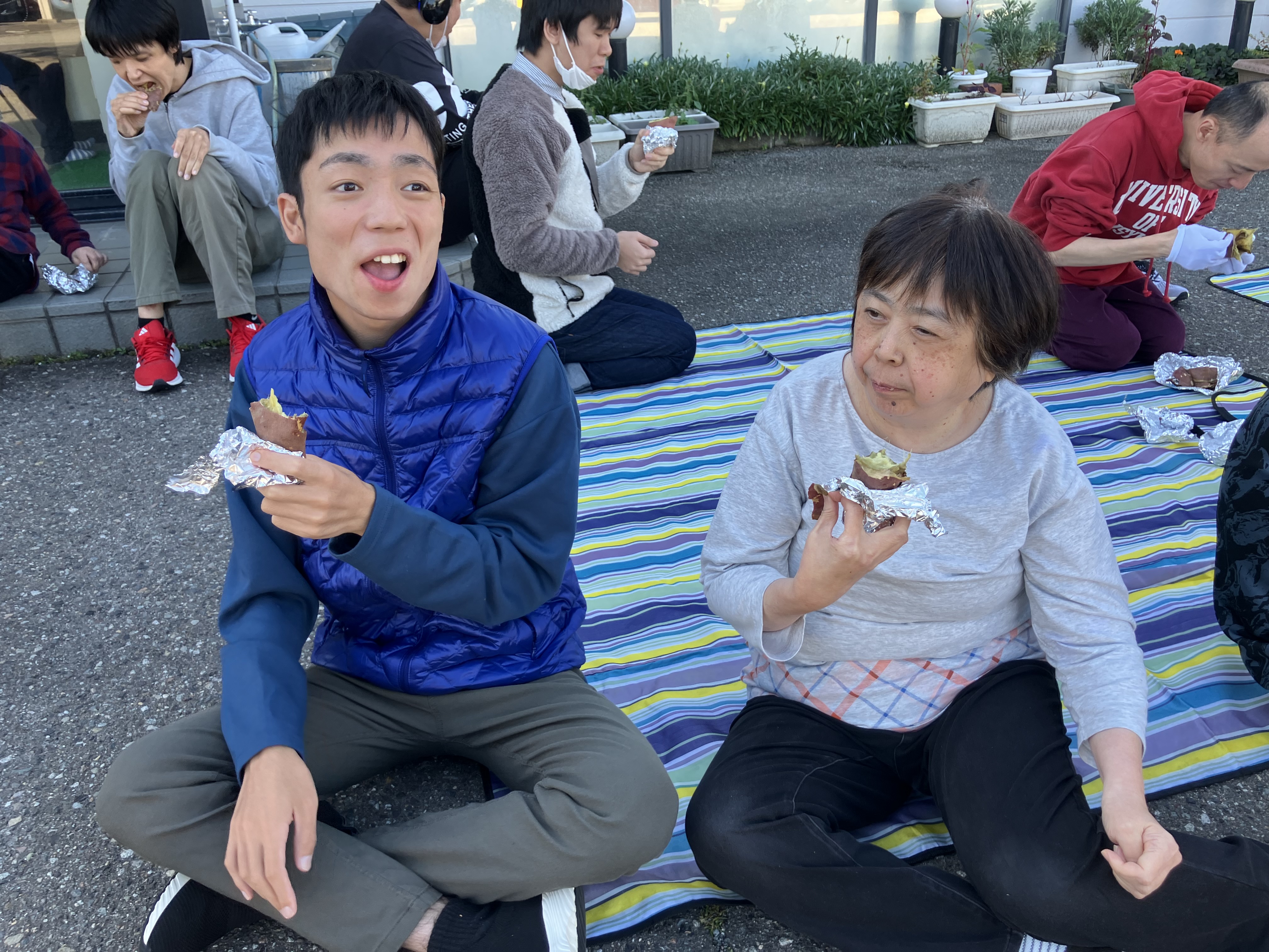 スマイル 2025.10.29 10月季節のイベント♪ こんにちは! スマイルです。 10月後半に入り一気に寒くなってまいりました。 そんな時は、秋の味覚!あったか『焼き芋』ですね。 あま~くて、ホッカホカの焼き芋に、利用者様も笑顔になりました。 また、皆さんで季節を感じていきたいです♪ 以上、スマイルでした!