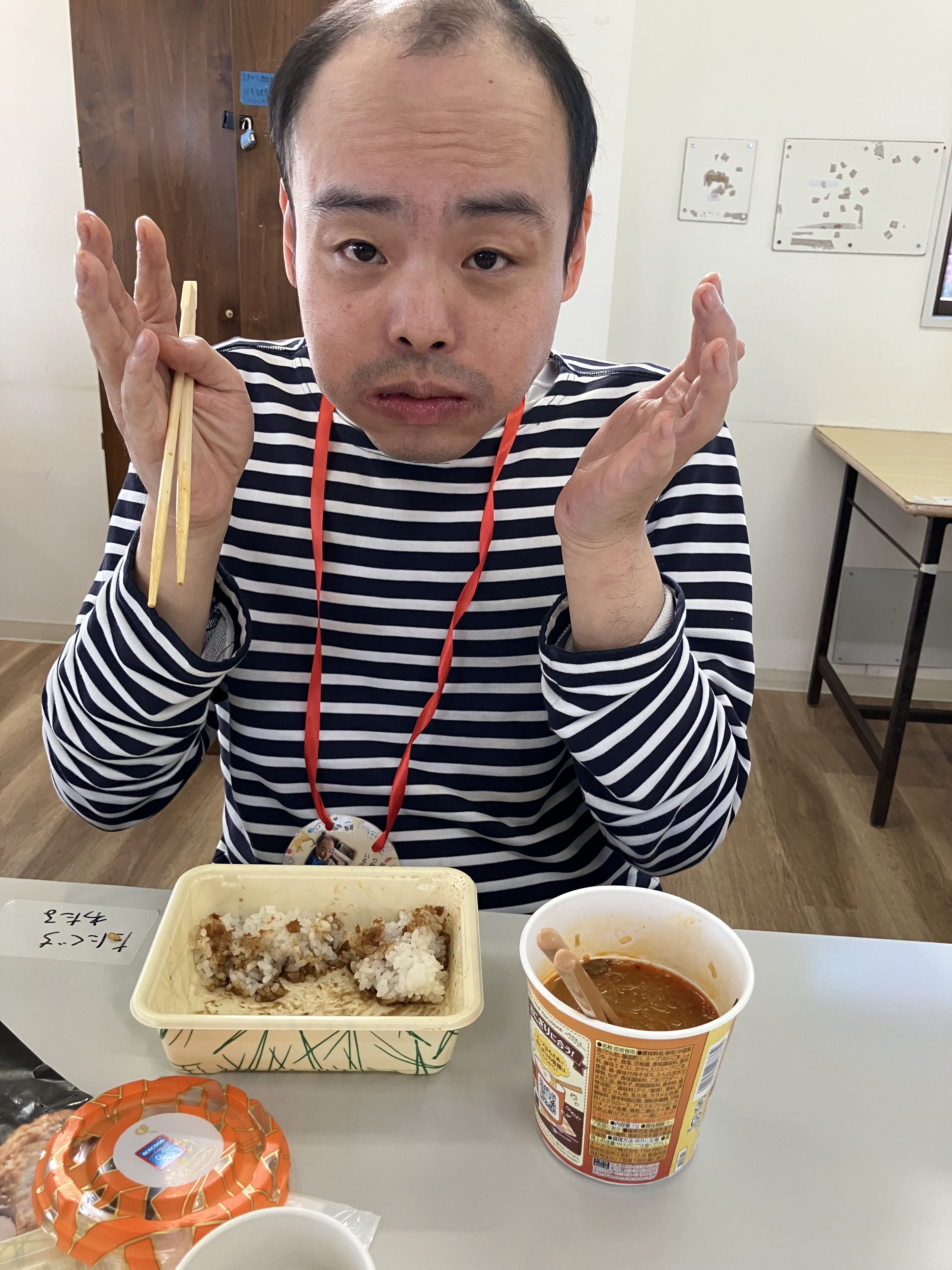 昼食は「くら」のお弁当と普段食べる機会の少ない、カップスープ!