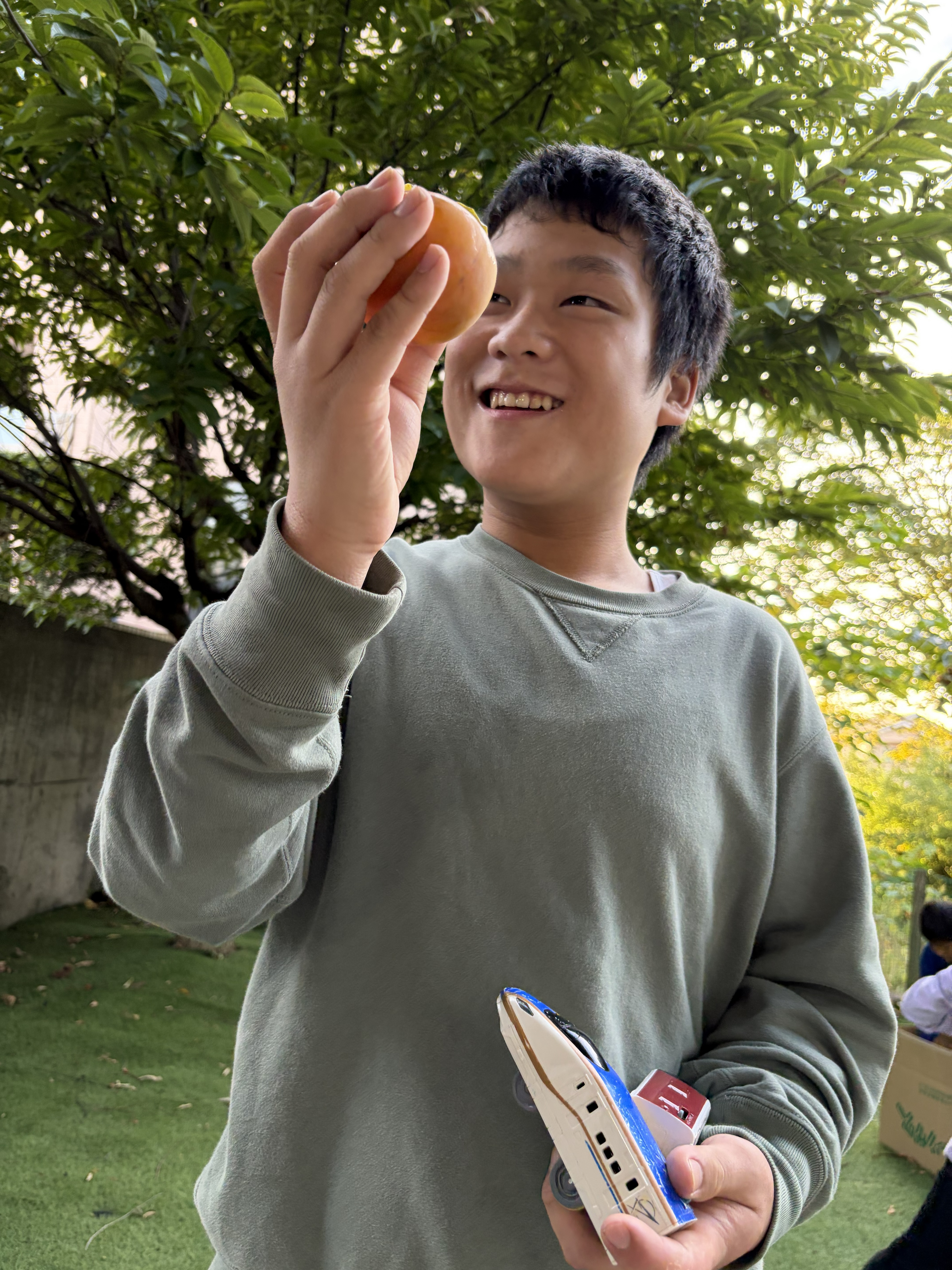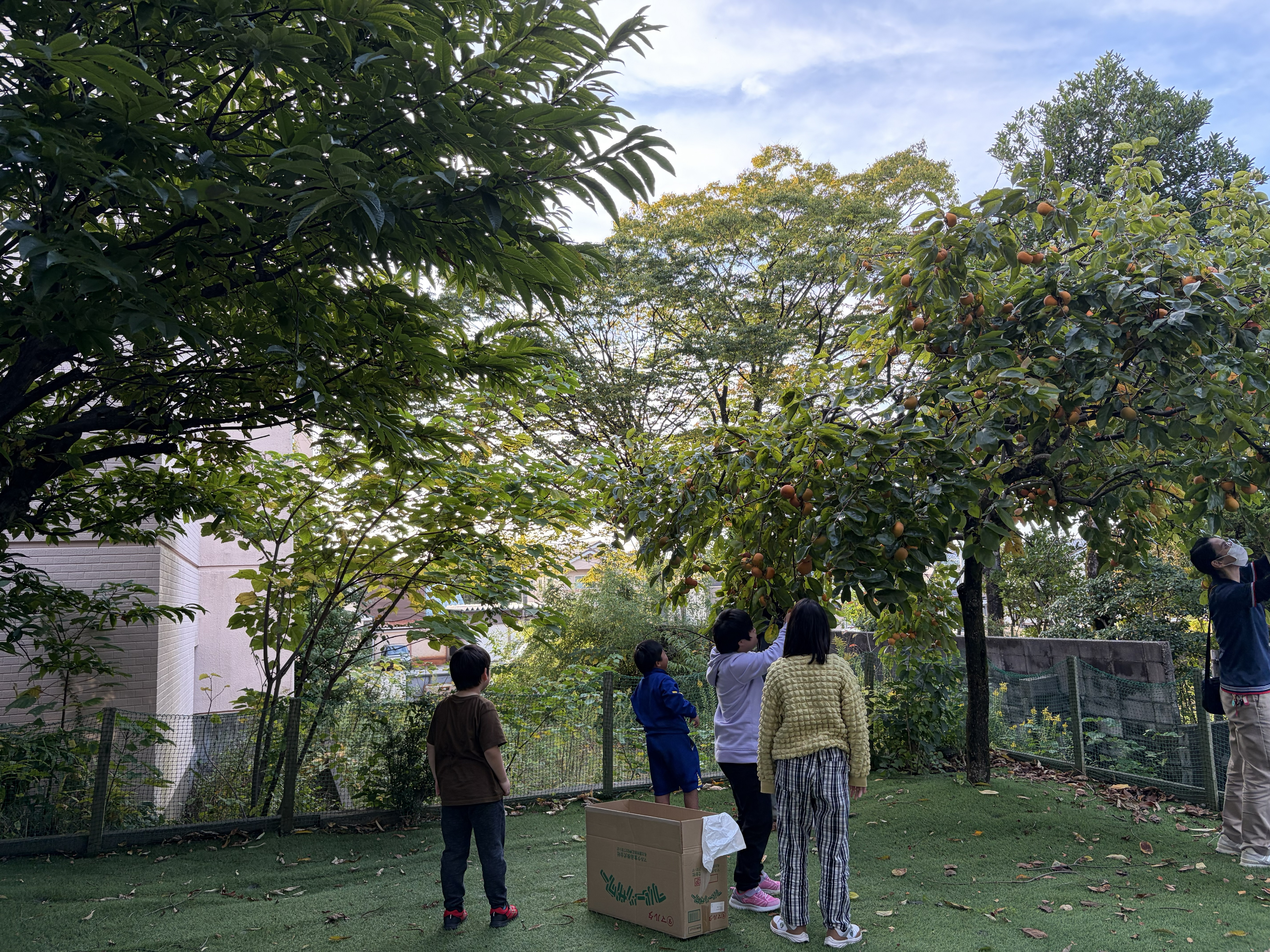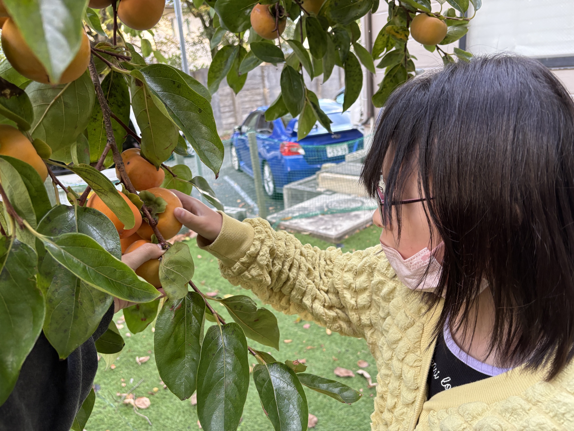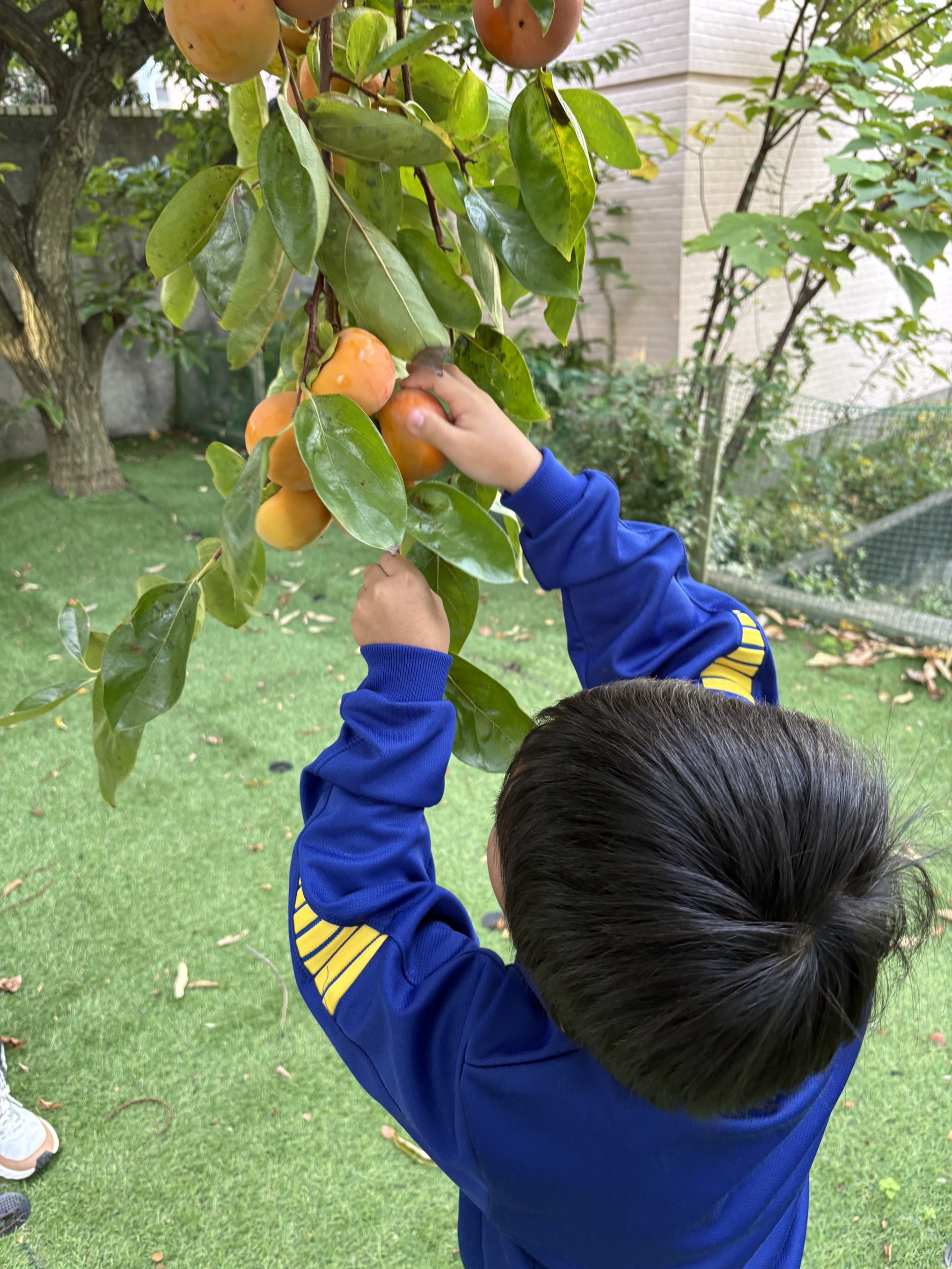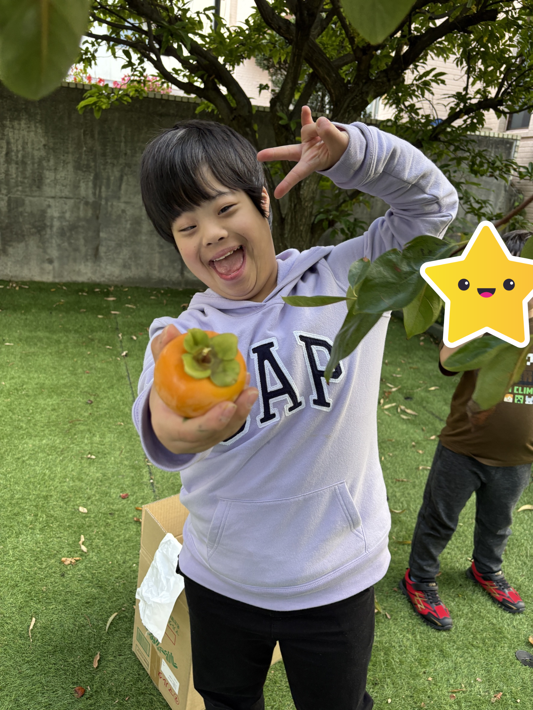 フレンズどれみ 2025.12.01 今年は豊作です🌳 フレンズどれみです☺ フレンズどれみの庭には、大きな柿の木があります🌳 今年は、柿が大豊作🎉 「柿、取りたい!」と子どもたちからのやる気💪 みんなで収穫しました! 身長よりも大きな木に一生懸命手を伸ばして収穫してくれました♪ 見ているスタッフに「大きいの取れた!!!」とにこにこで見せに来てくれます☺ 「持って帰りたい!」と袋いっぱいに柿を持ち帰りました(*’ω’*) おいしく食べてねー♪