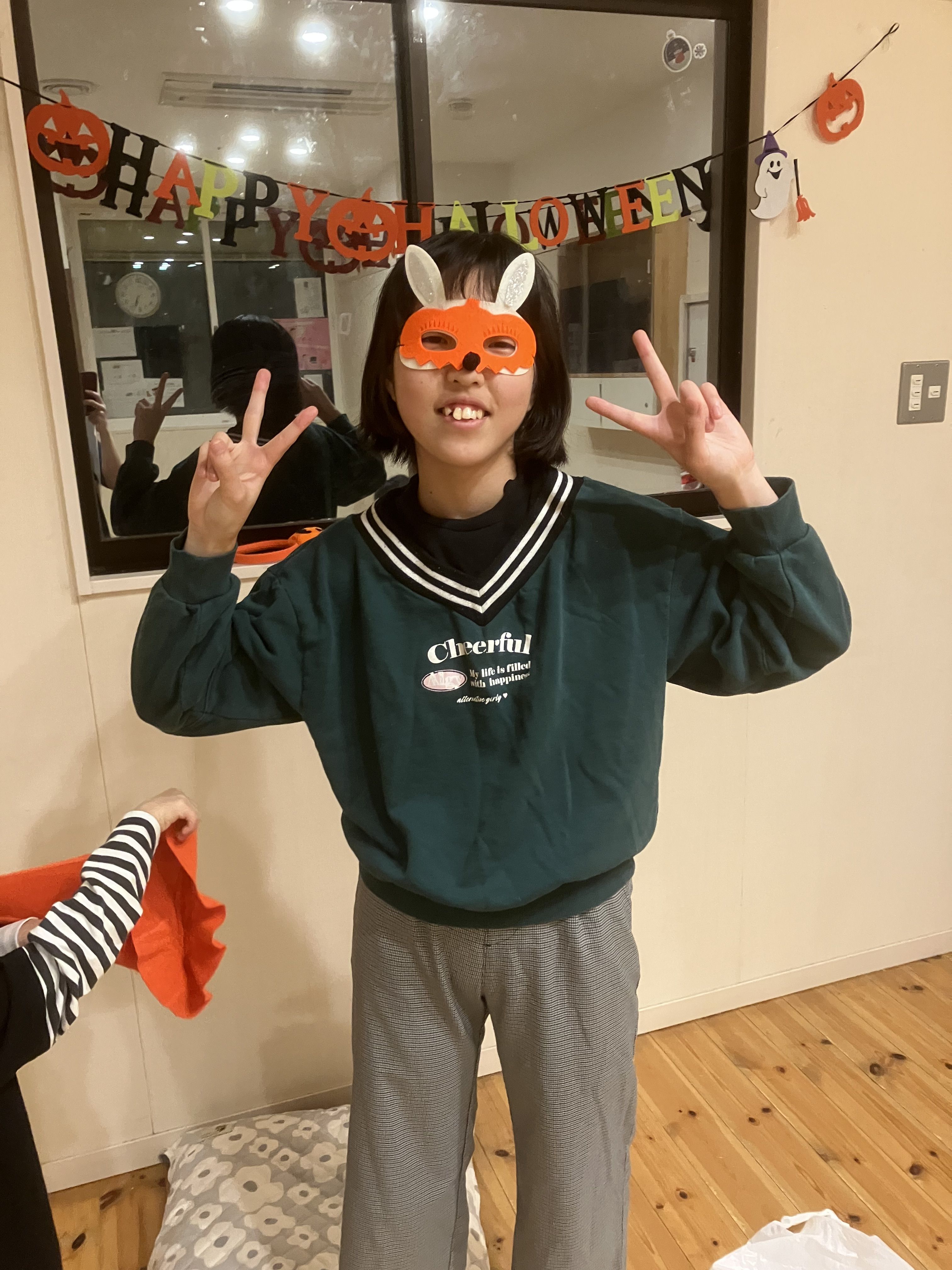 利用者様もハロウィンの日をしっかりと把握し、ハロウィンの時に言う合言葉も知っており、「トリックオアトリートだね!」と登校前から楽しみにされていました!