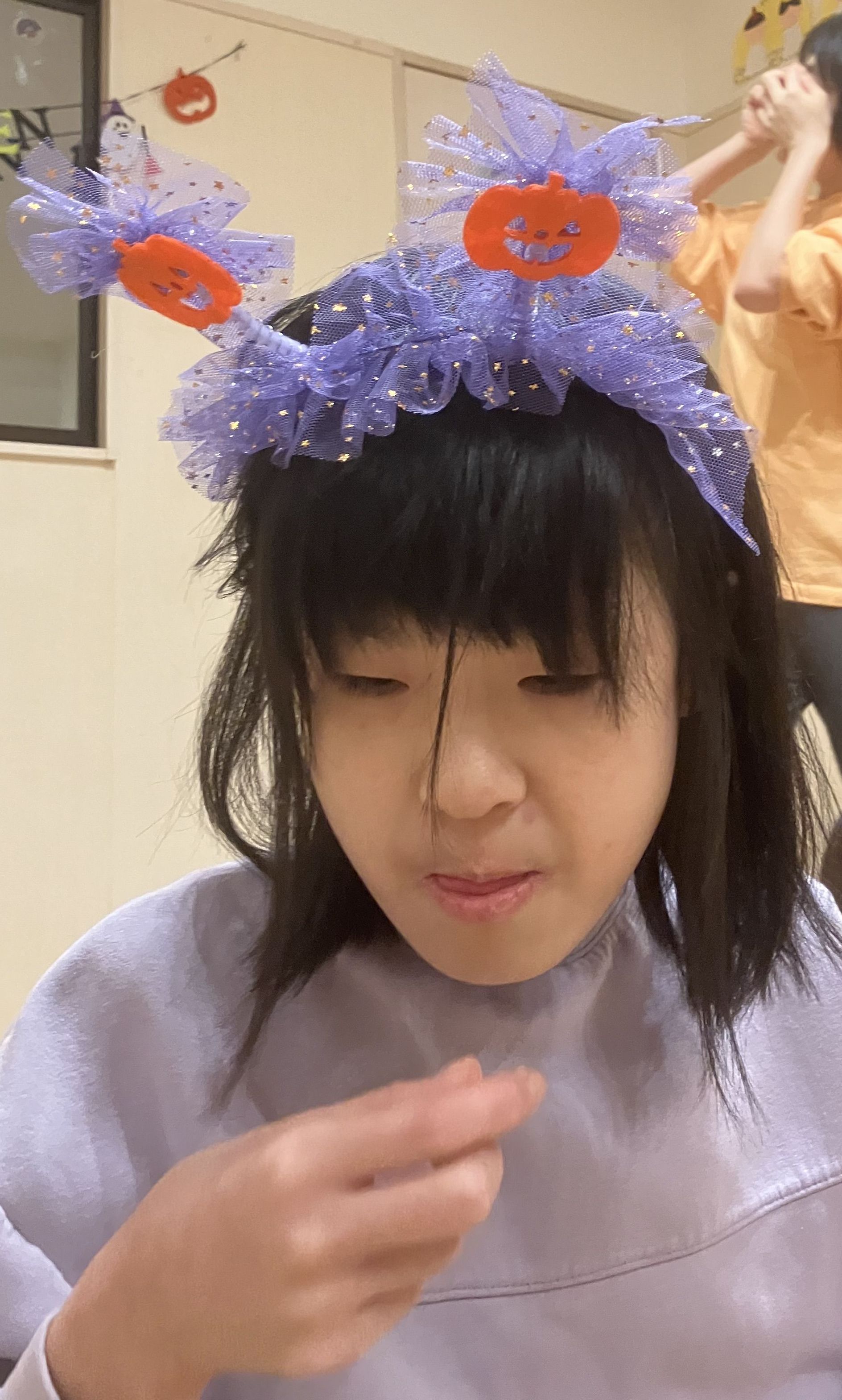 夕食前、どの利用者様も仮装を楽しまれ、帽子をかぶったり、カチューシャやお面をつけたりと仮装の準備は万端です👌