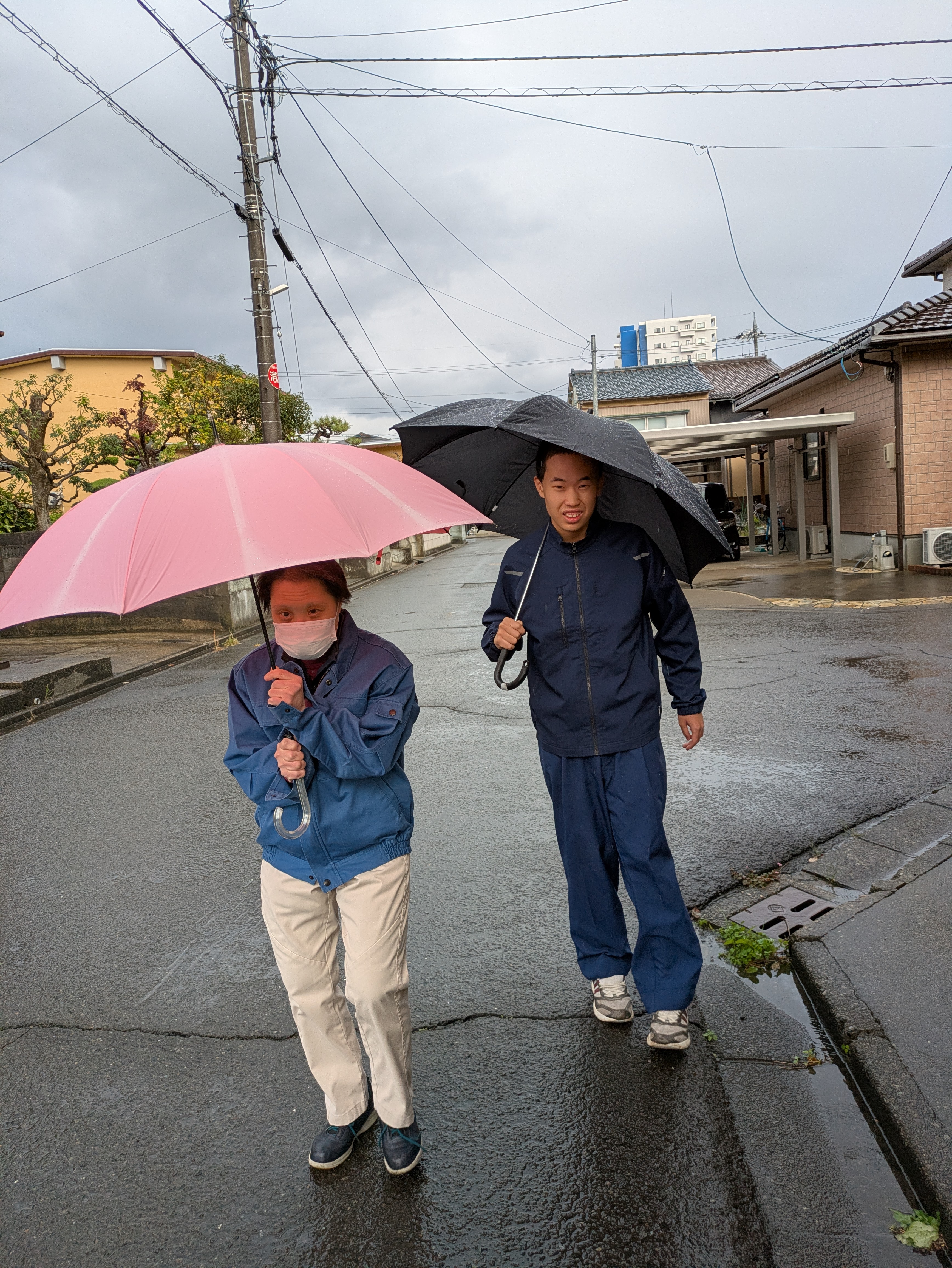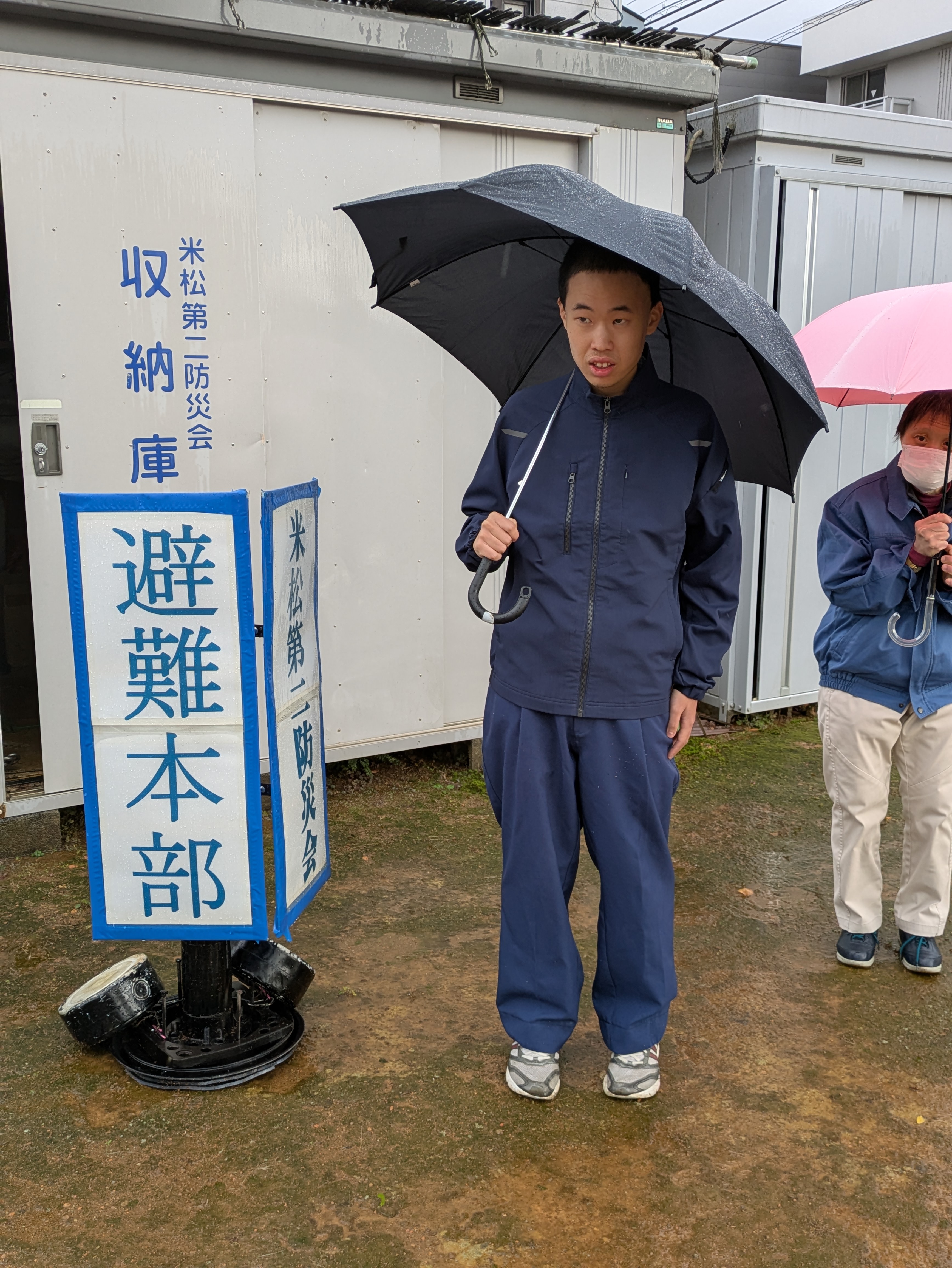 雨の降る肌寒い日でしたが、利用者様は職員の指示の下、車はもちろん、ブロック塀や電柱を気にしながら黙々と歩き、自治会メンバーの中で最も早く避難所に到着することが出来ました。 これからも地域の一員として、いざという時に落ち着いた行動がとれ、協力し合えるよう、これからも参加していきたいと思います。