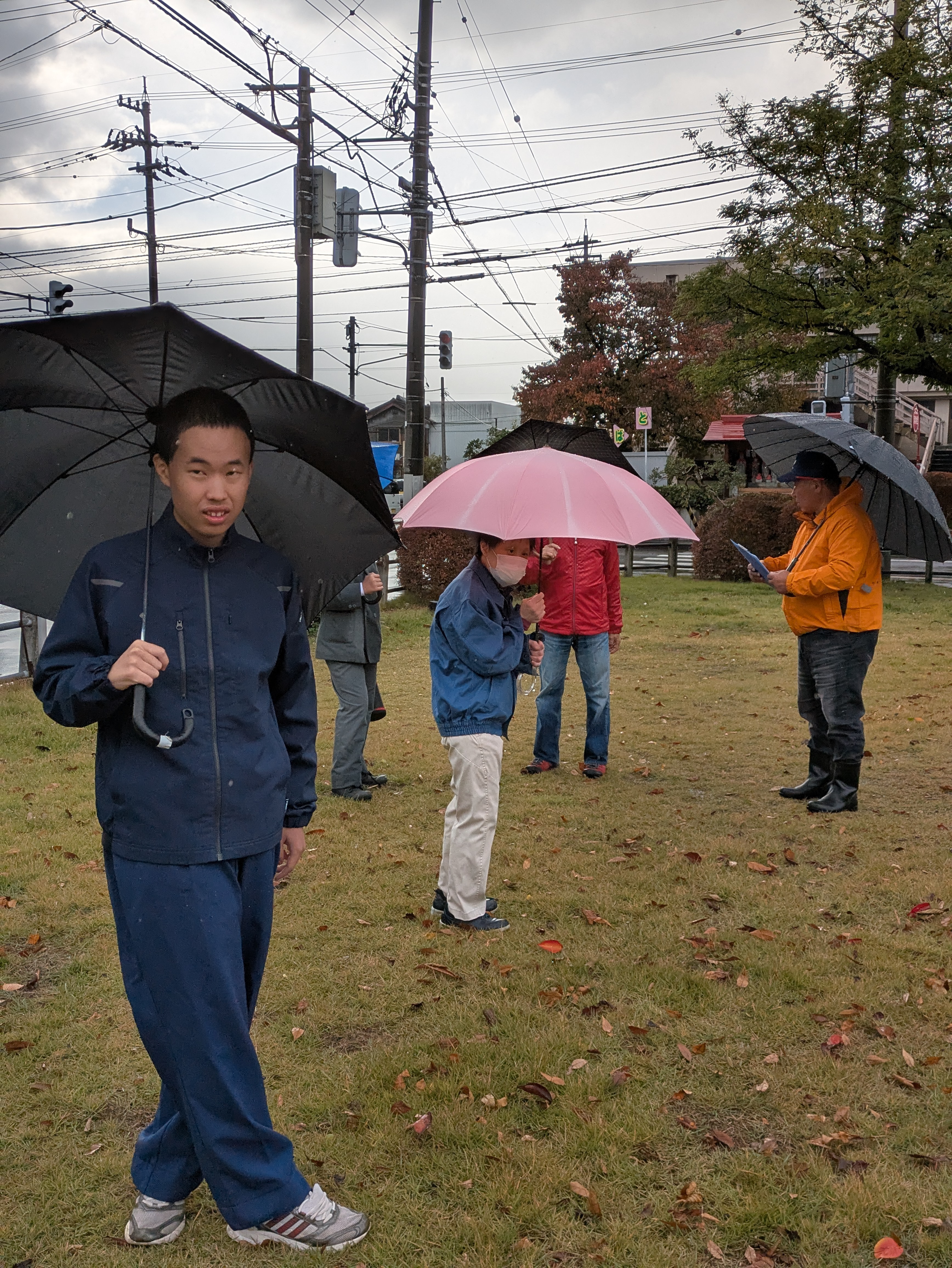 11月 10日 足羽サポートセンターのある日之出地区におきまして、住民の方々を対象とした避難訓練がありました。小学生の下校途中の時間帯に大地震が発生したという想定です。頭や身体を守るシェイクアウト訓練の後、足羽サポートセンターから1次避難所の公園まで避難をします。今年は2名の利用者様と職員1名が参加させていただきました。昨年に続き2回目の参加です。