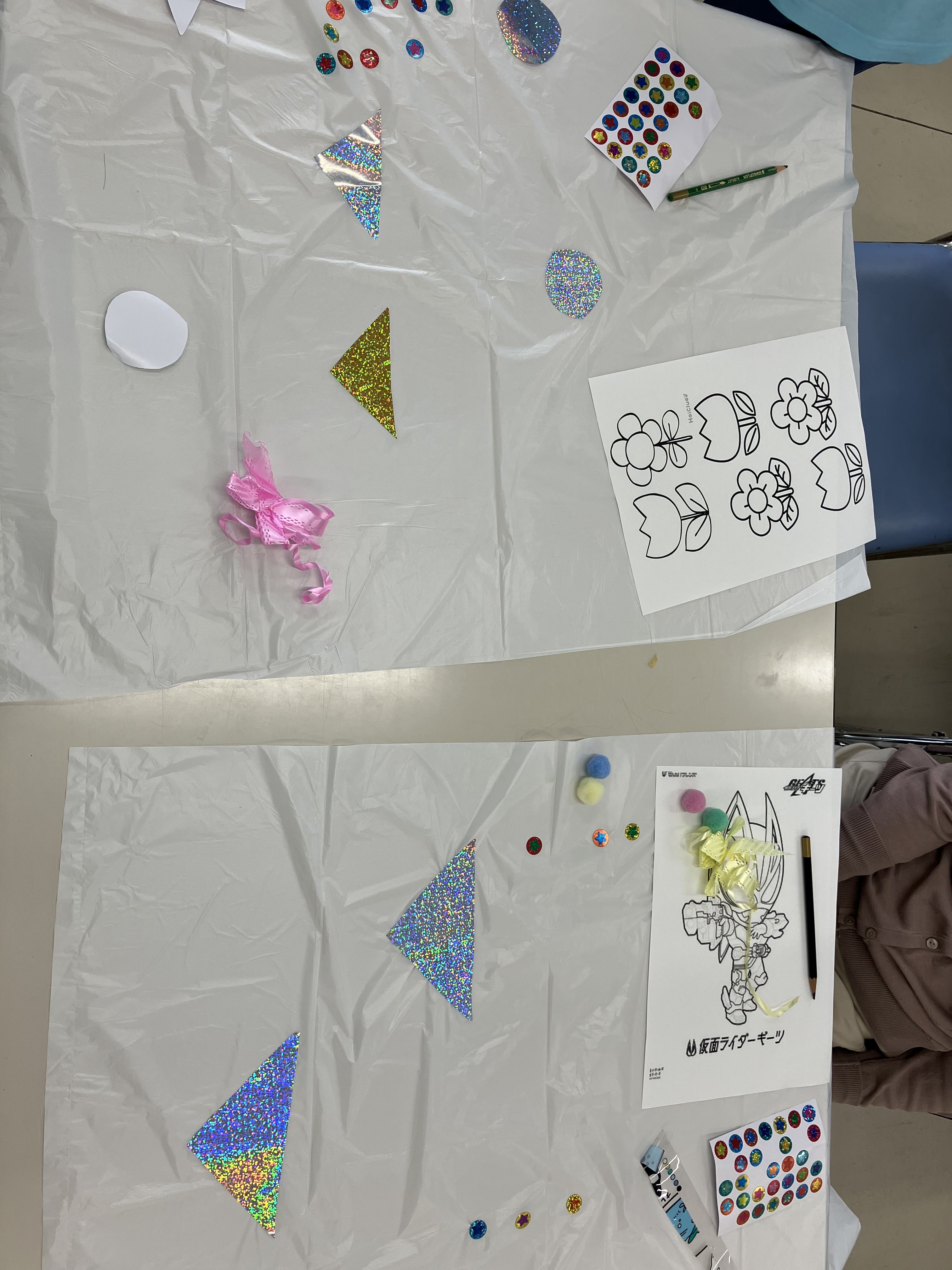 手作り衣装は、ゴミ袋や家で使わなくなった布やシール、色画用紙等を再利用して、利用者様の好きなデザインで衣装を作っていただきました✨
