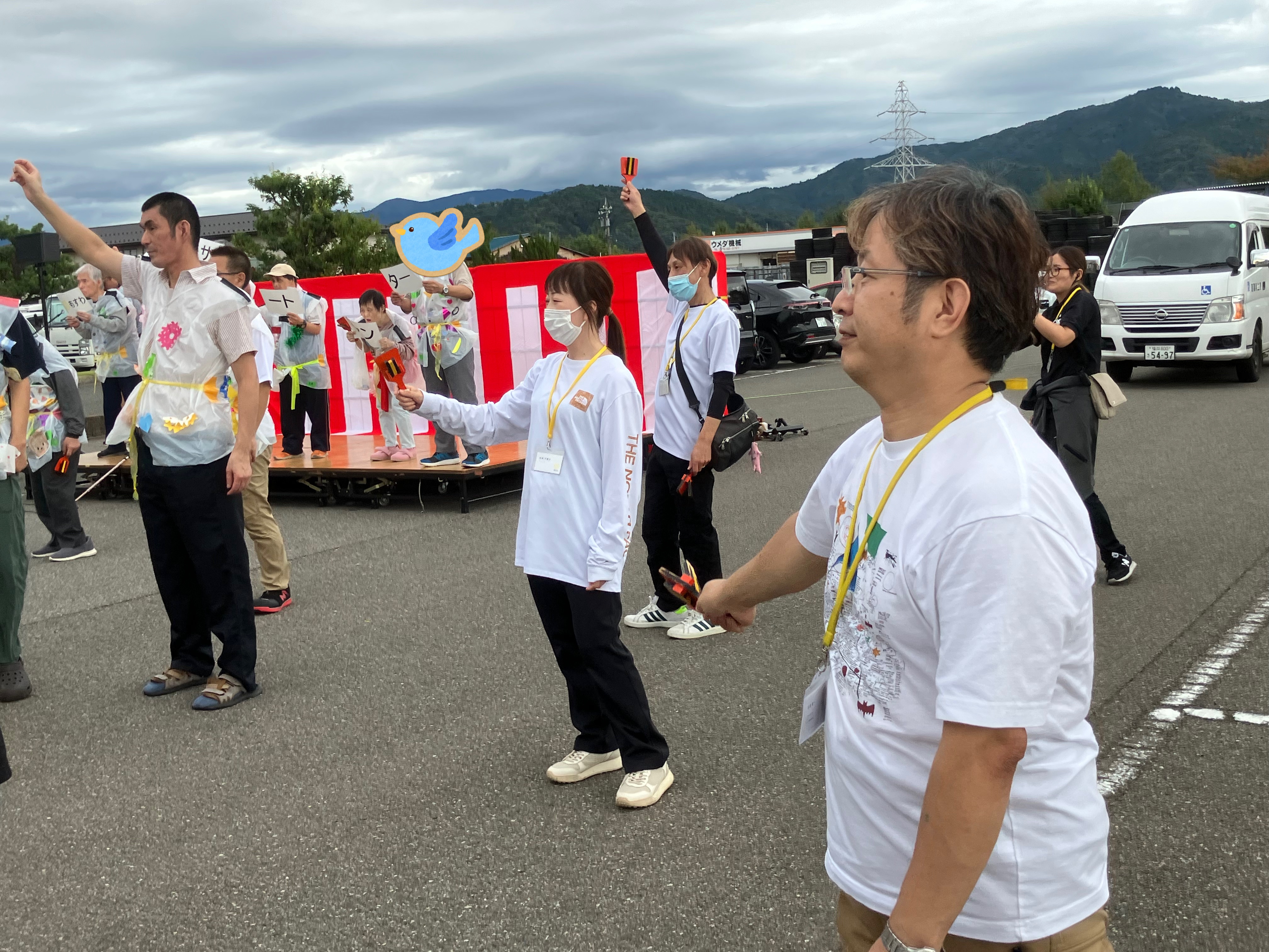 当日に向けて、多めに法被を作ったので、「着たい!一緒に踊りたい!」と希望があった方にもお渡しして、足羽サポートセンター以外の方も一緒に踊りを踊ってもらい、大盛り上がりでした(^^)/