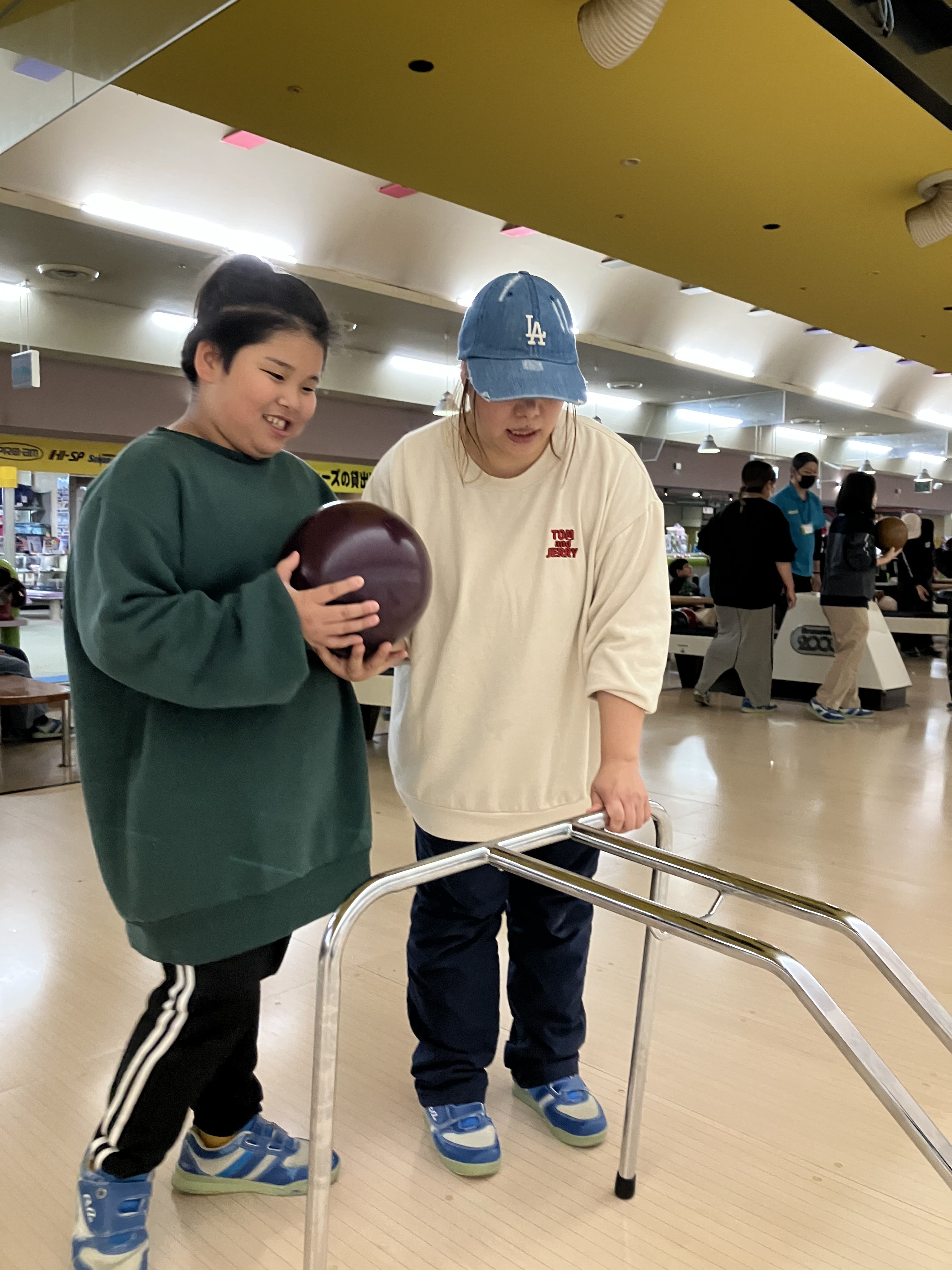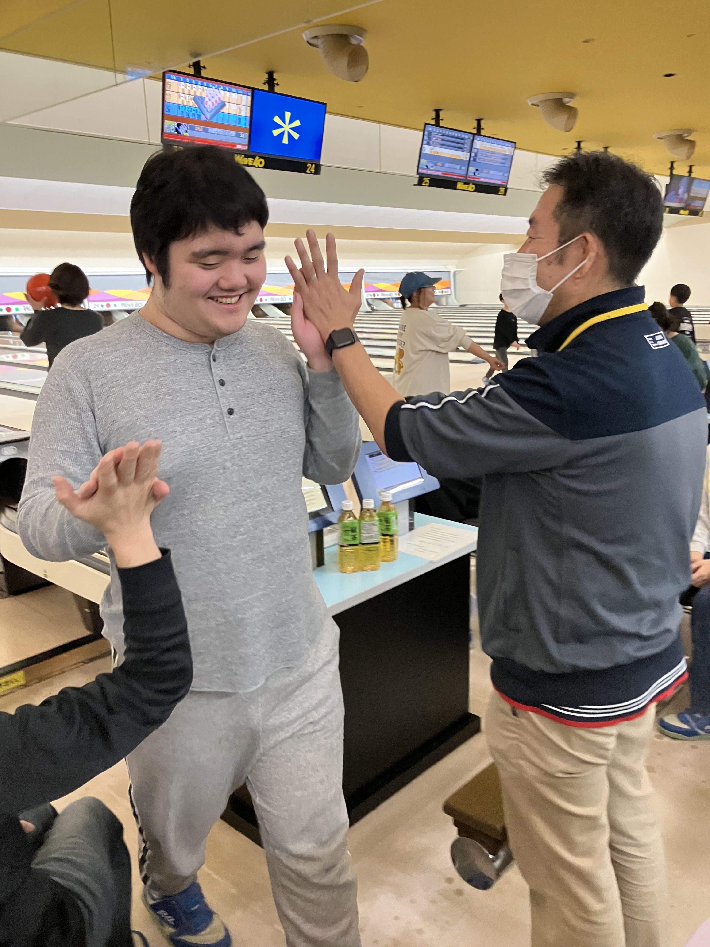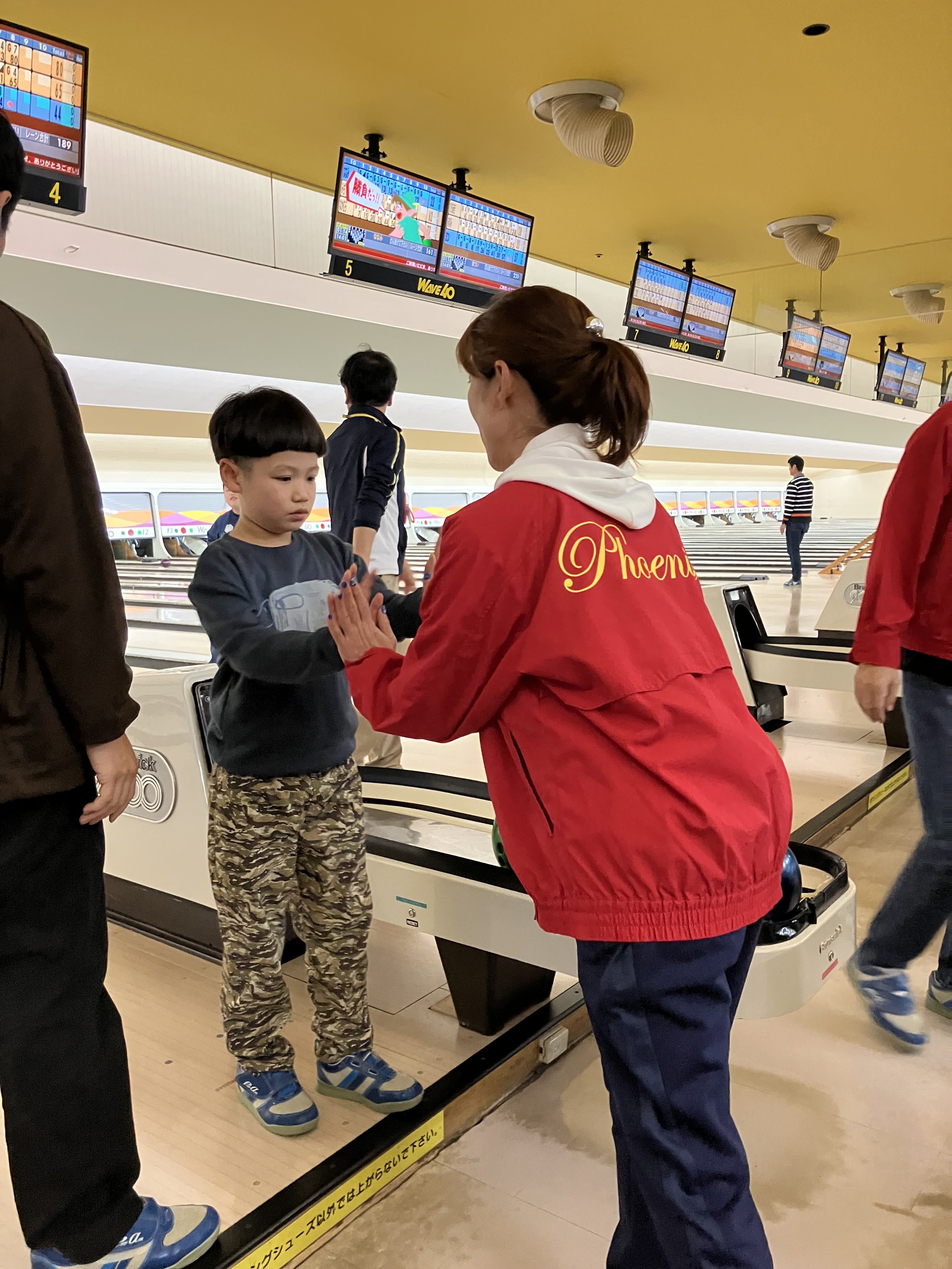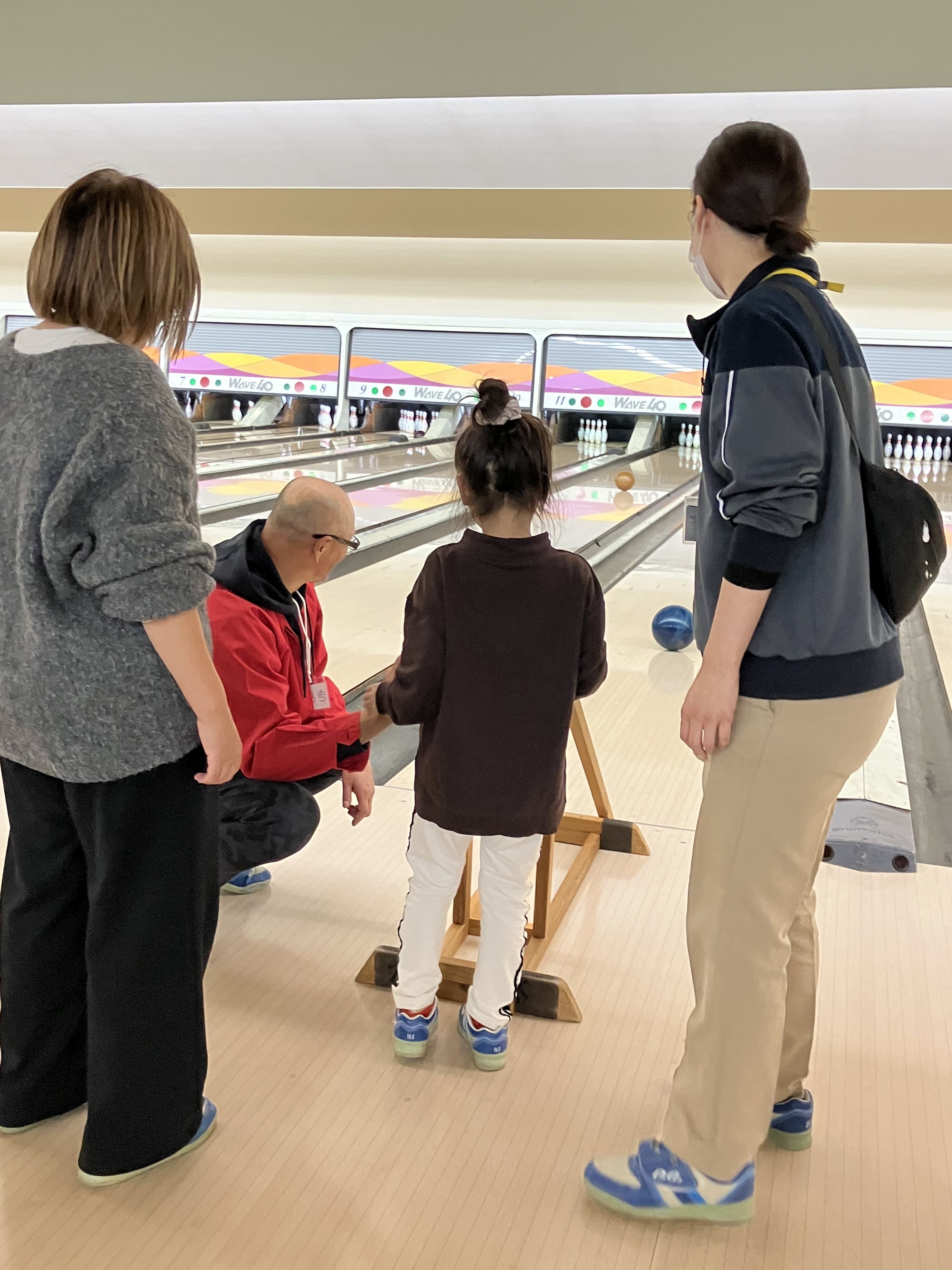 コツを教えてもらい、たくさんピンが倒れるとハイタッチをしたり、喜びを共有するみなさんを見ていてほっこりです😆💕
