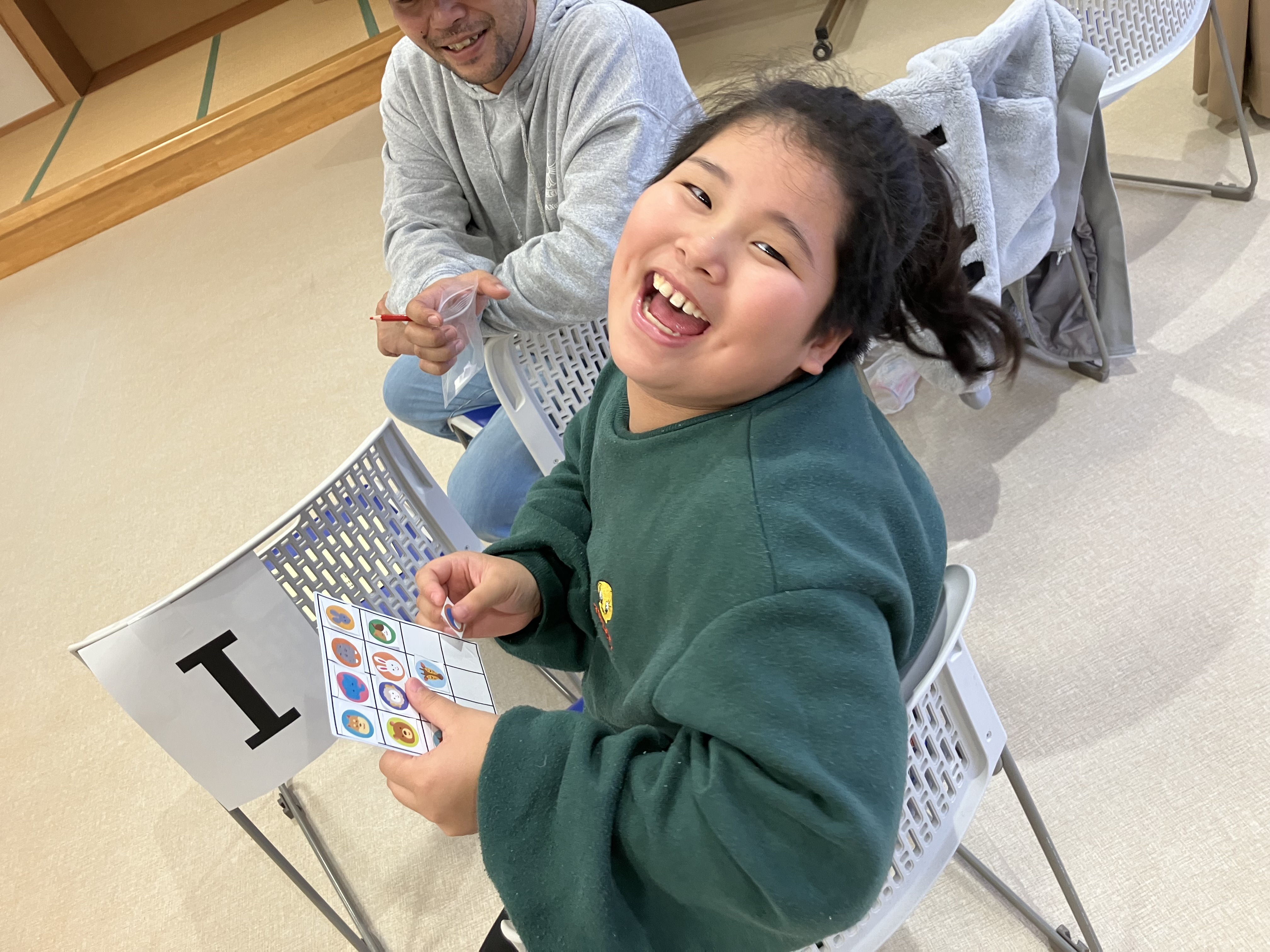 どの動物を貼ろうかな~?と相談し合いながら自分のビンゴシートを完成させていました。