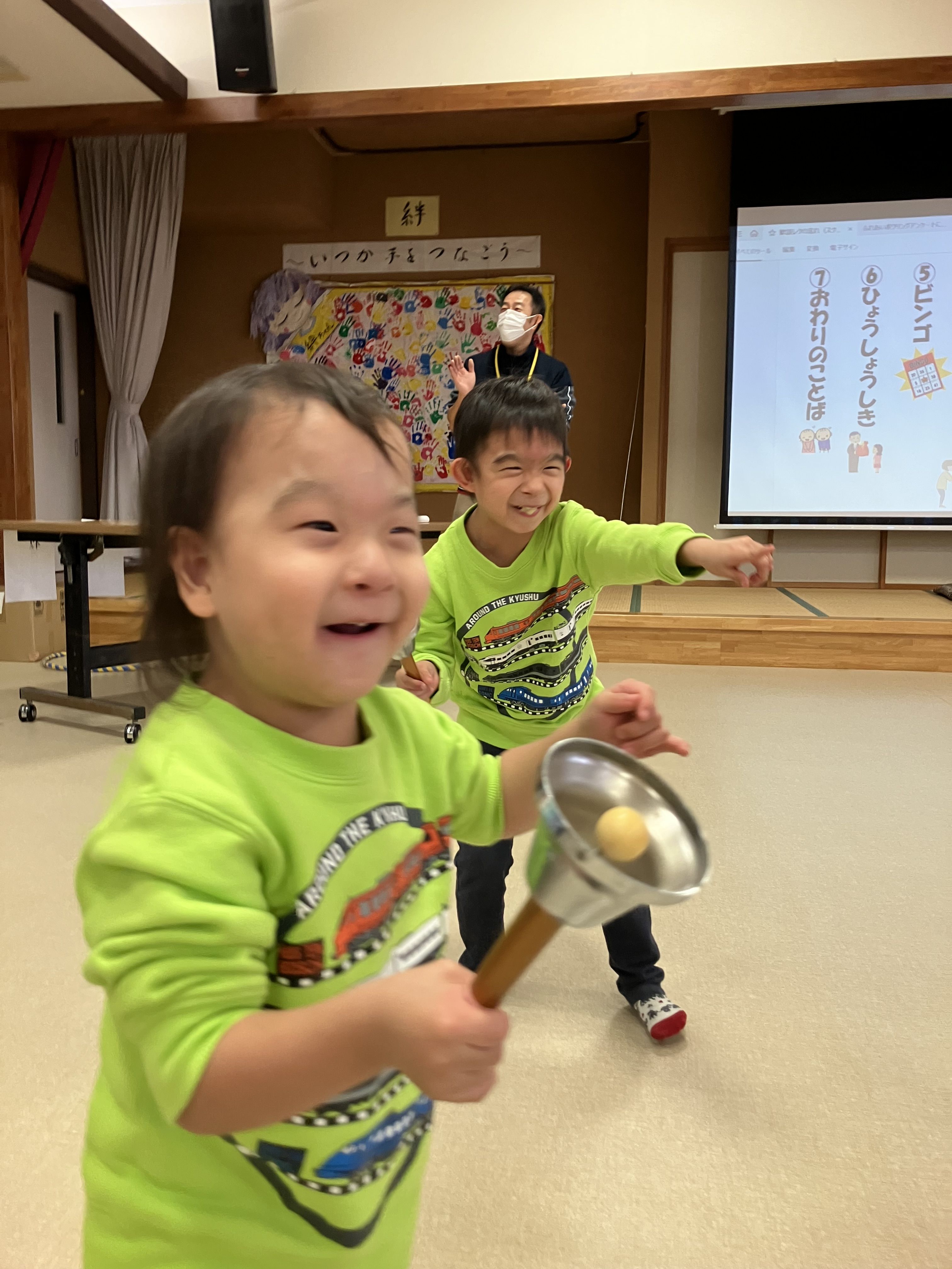 ビンゴ!!とみんな勢いよく手を挙げ、大量のお菓子をGET✨