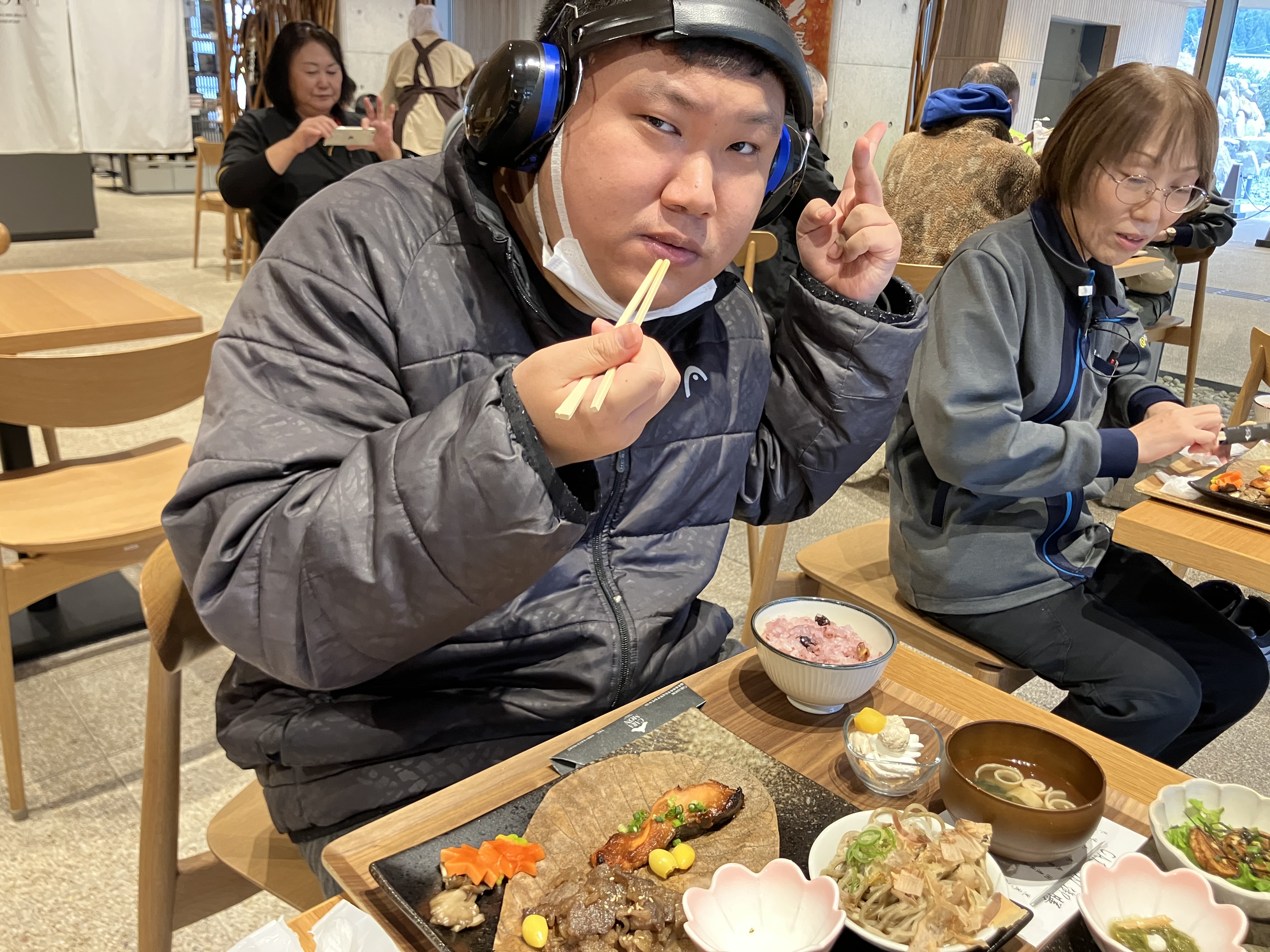 スマイル 2025.12.08 11月のスマイル社会体験活動『福井の郷土料理を食べよう』 こんにちは! スマイルです。 朝倉氏遺跡博物館内にある足羽ワークセンターのお店 CARAMON asakura へ【CARAMON御前】を食べに行ってきました。 福井の古米、魚やお肉、おろしそばと福井の幸を堪能しました。 皆さん完食でした。 以上、スマイルでした!