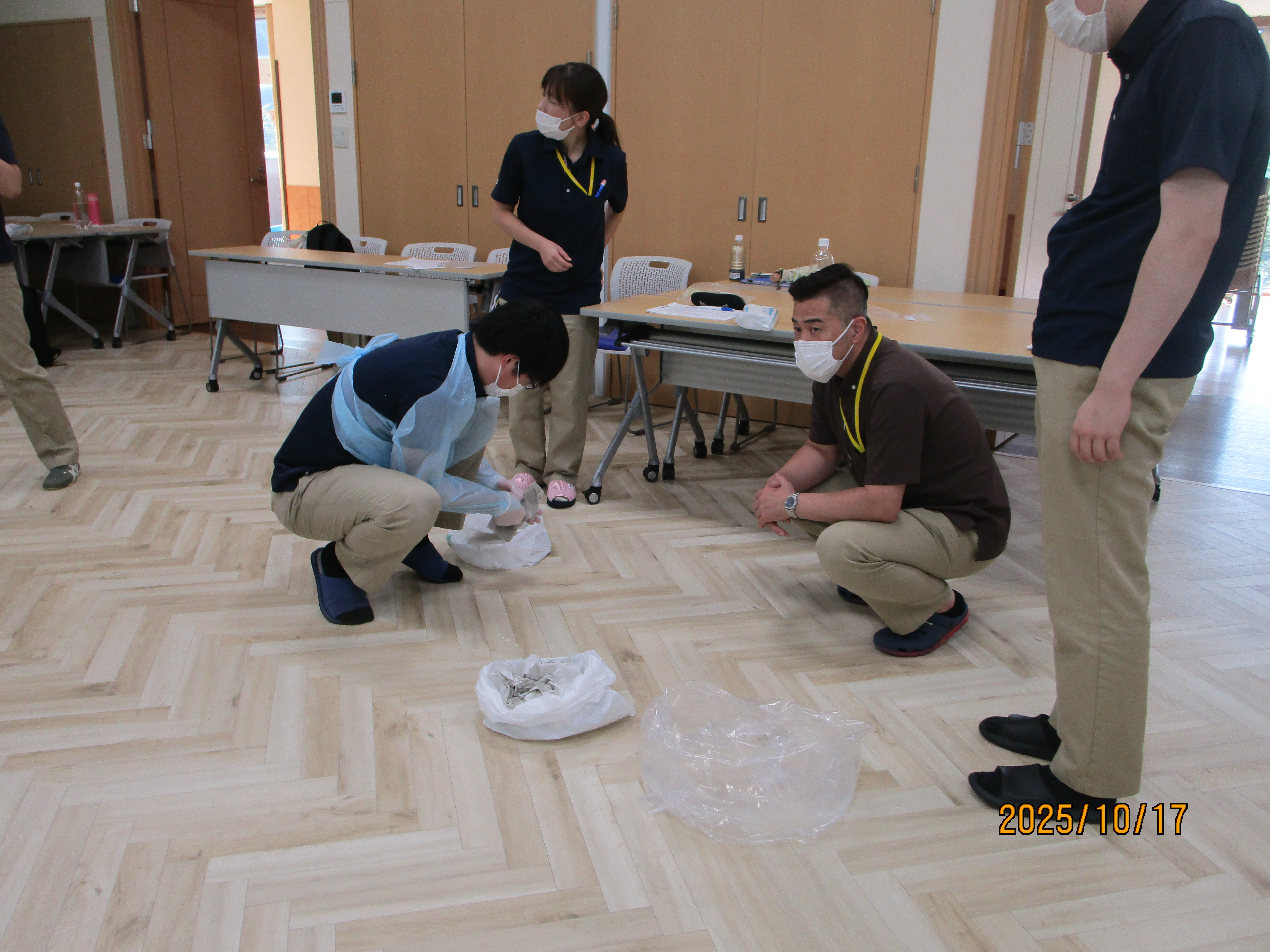 感染症が広がりやすい季節に備えて、今回は嘔吐物発見時の対応方法について学びました。