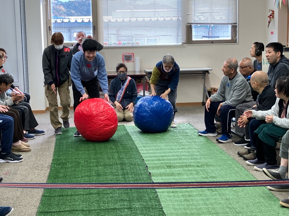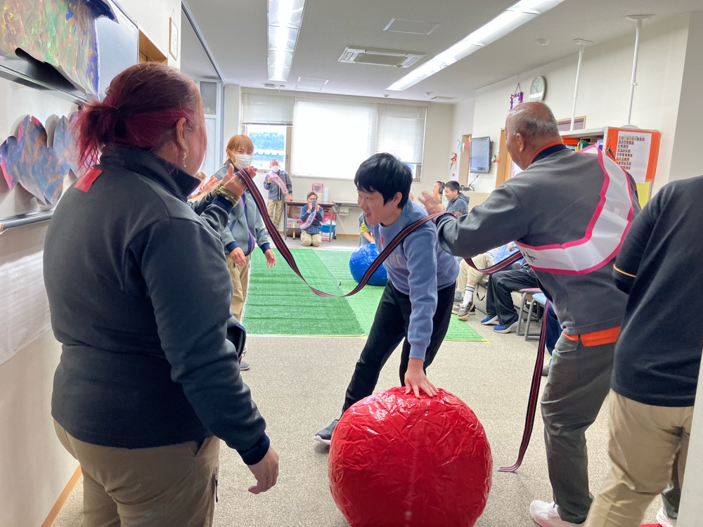 当日はあいにくの雨模様であったため、室内での運動会となりましたが、利用者様は張り切って参加されました 😆