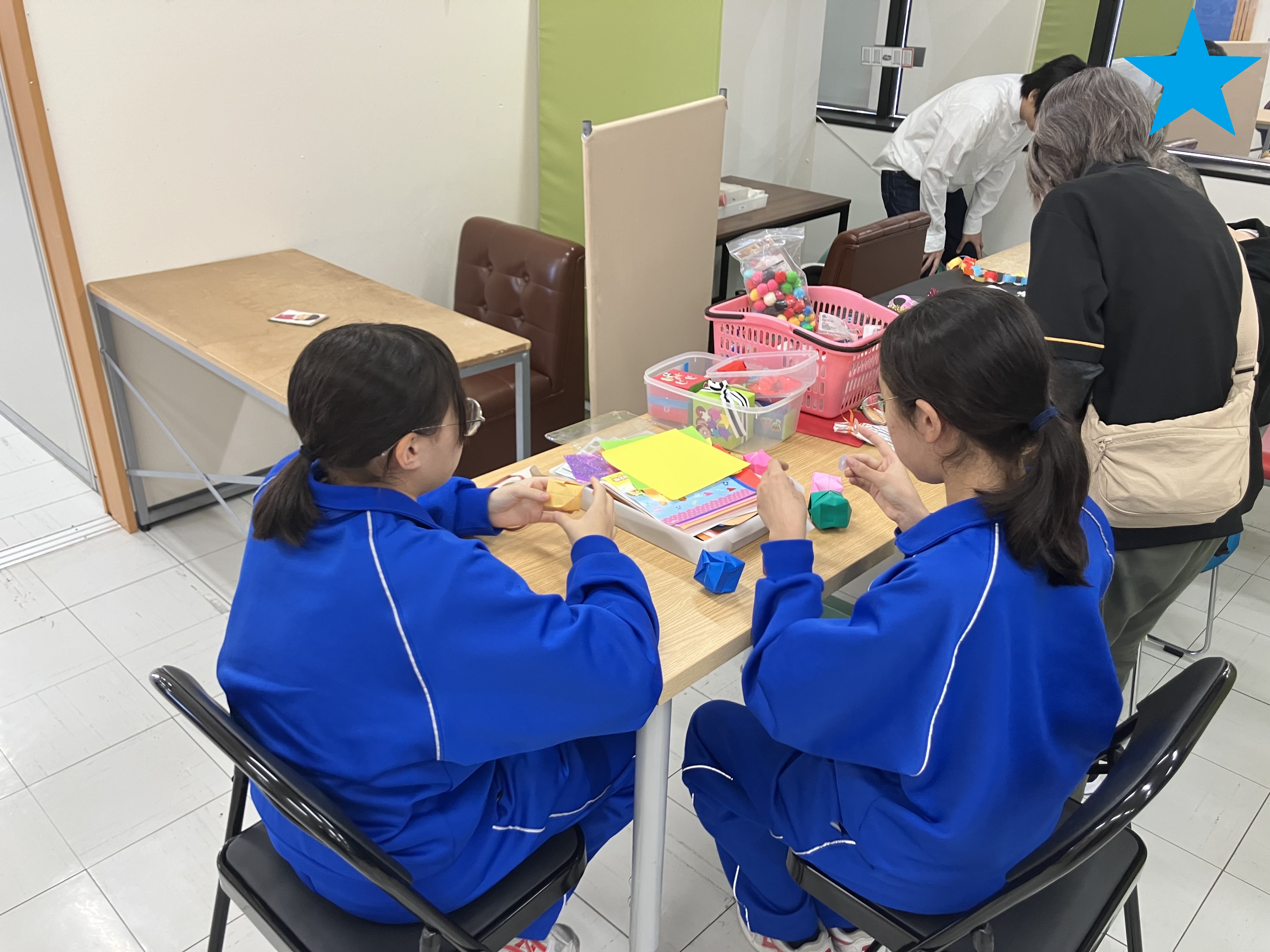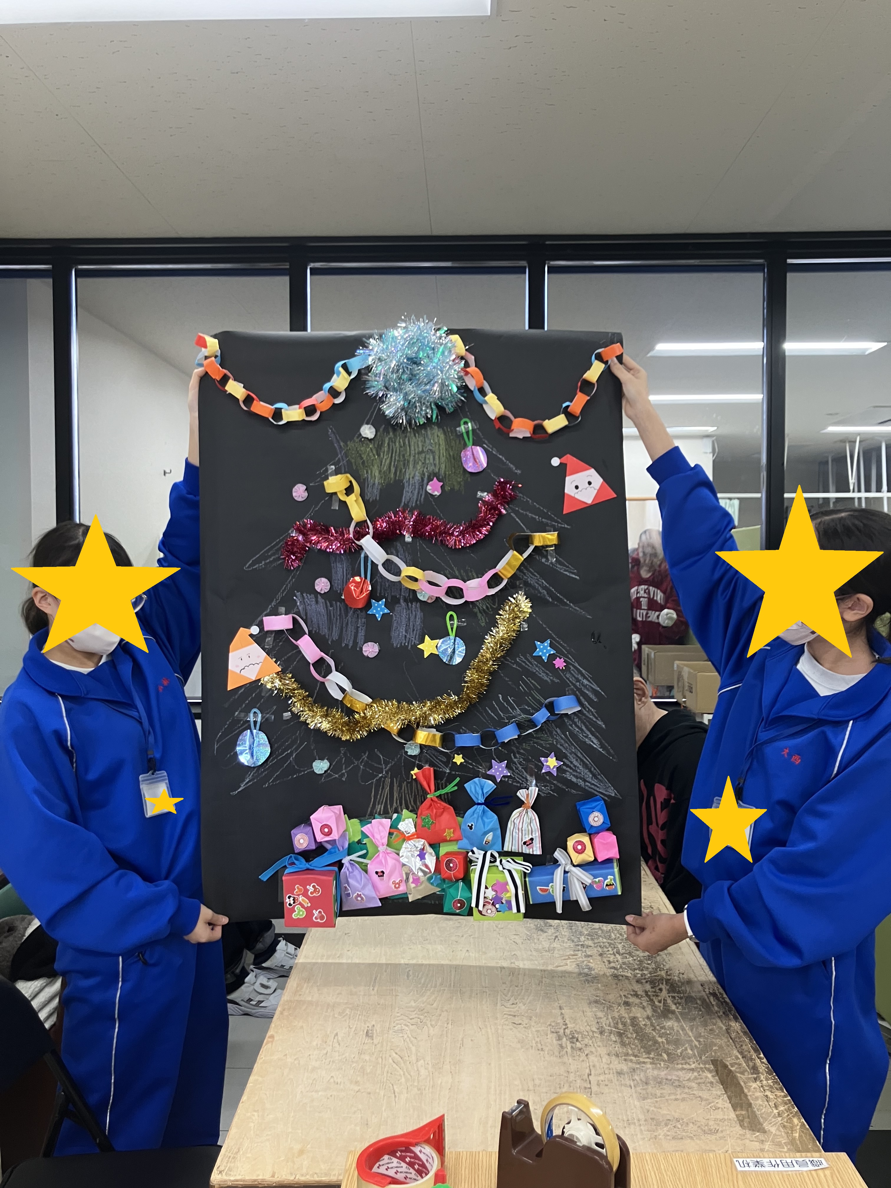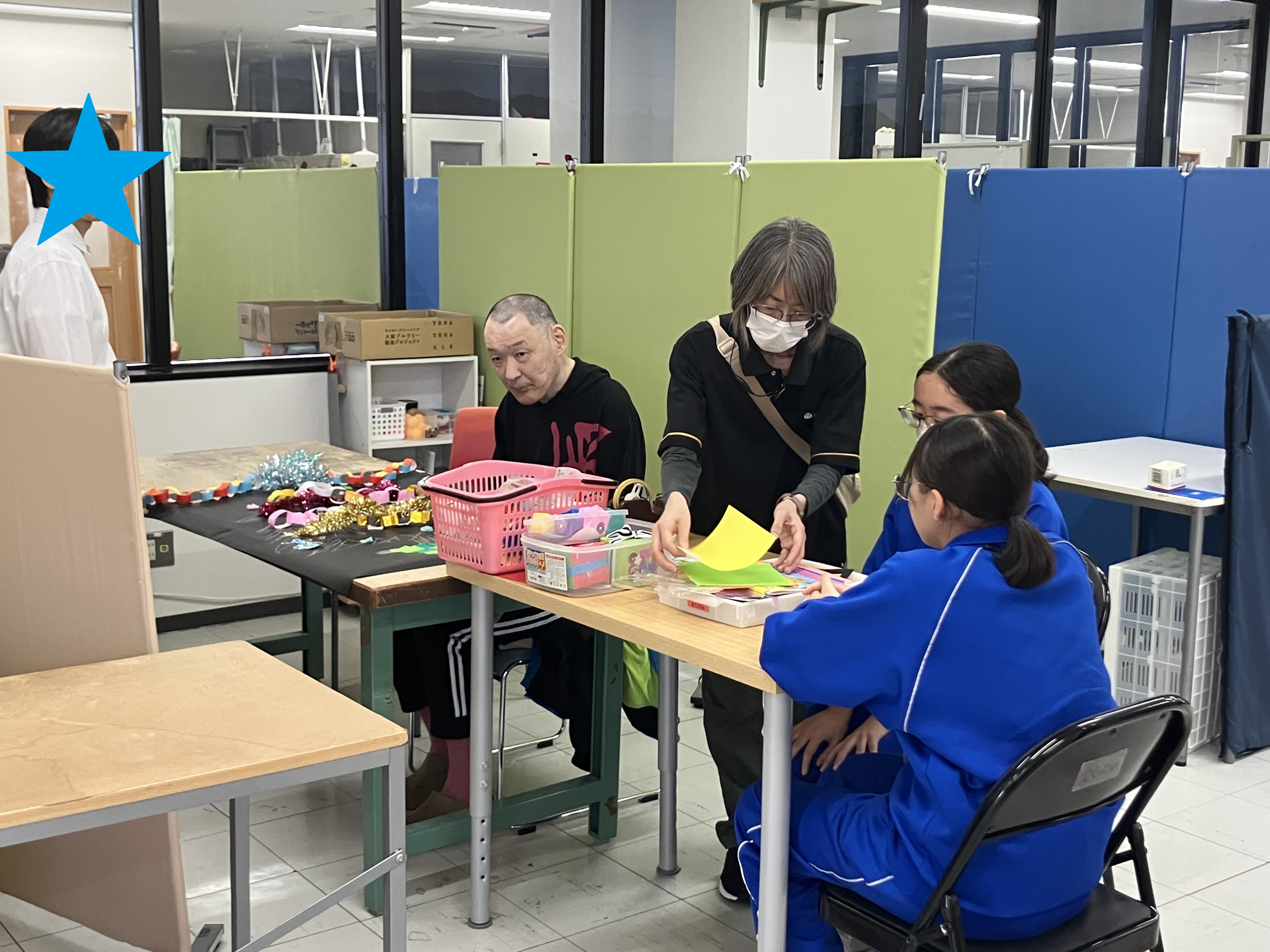 スマイル 2026.01.07 職場体験実習~足羽第一中学校~ こんにちは。スマイルです。 11月に足羽第一中学校の学生さんが職場体験に来られました。 障害を持たれた方との関わりは初めてという事でした。 利用者様と一緒に、装飾活動を行い、素敵な作品を作ってくださいました。 2日間という短い時間ではありましたが、学べたことはあったかな? 福祉の仕事に興味を持ってくれると嬉しいです♪ 以上、スマイルでした。