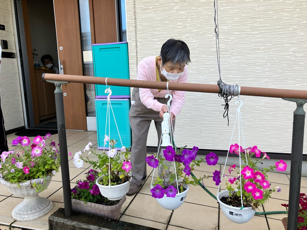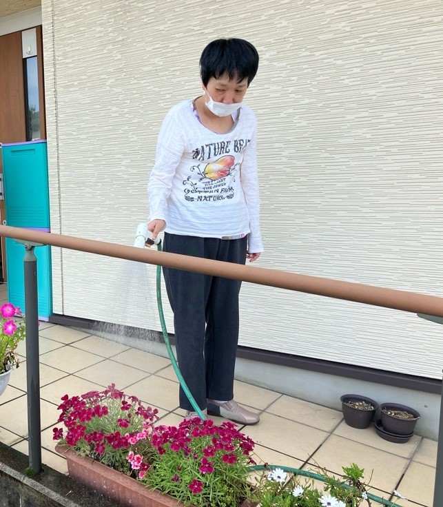世話人さんが声を掛けると水やりの手伝いをしてくださるご利用者様も😊
