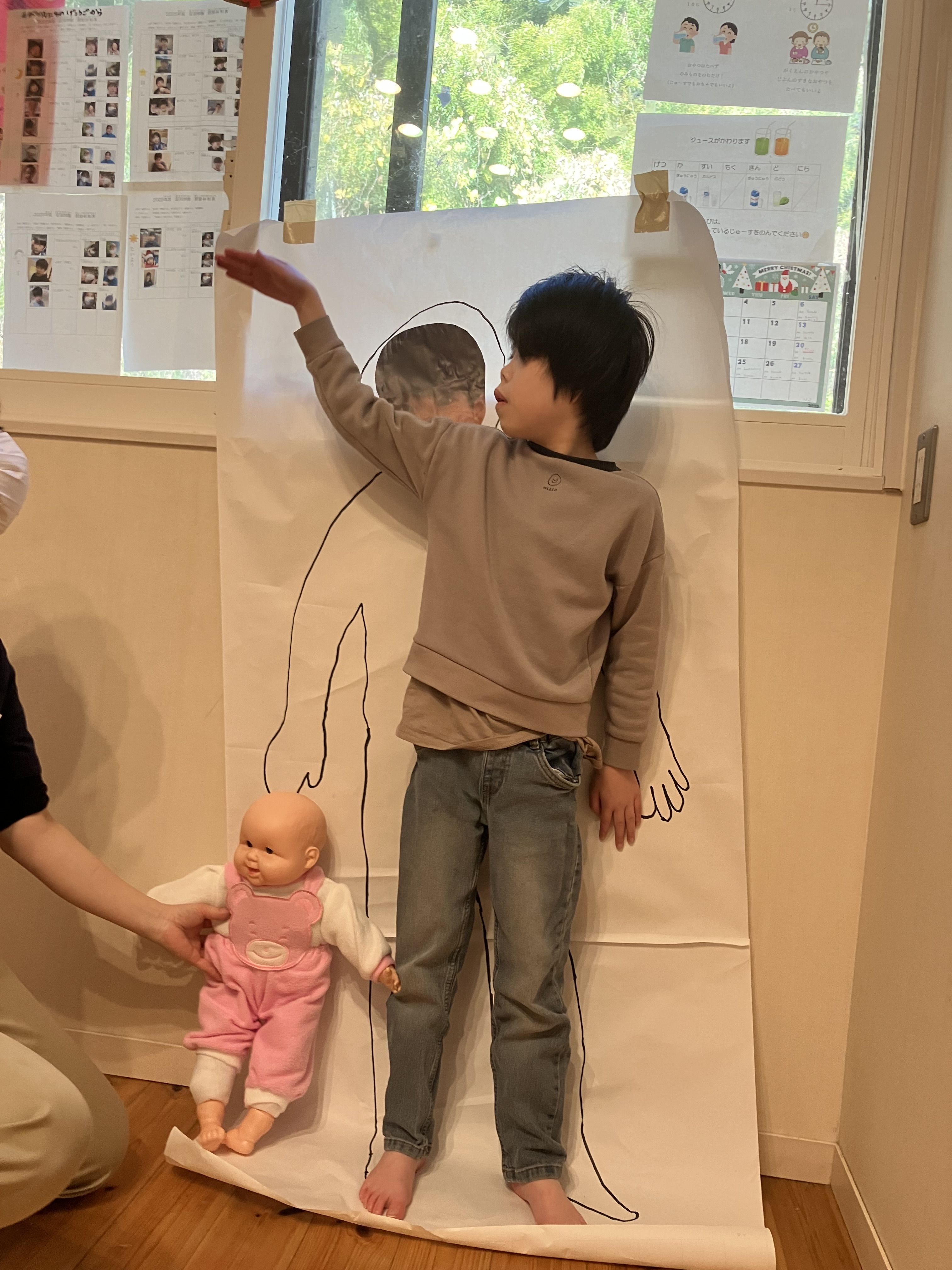 12月は自分が生まれた時からどれくらい成長したのか、実際に赤ちゃん人形を使って体験しました。