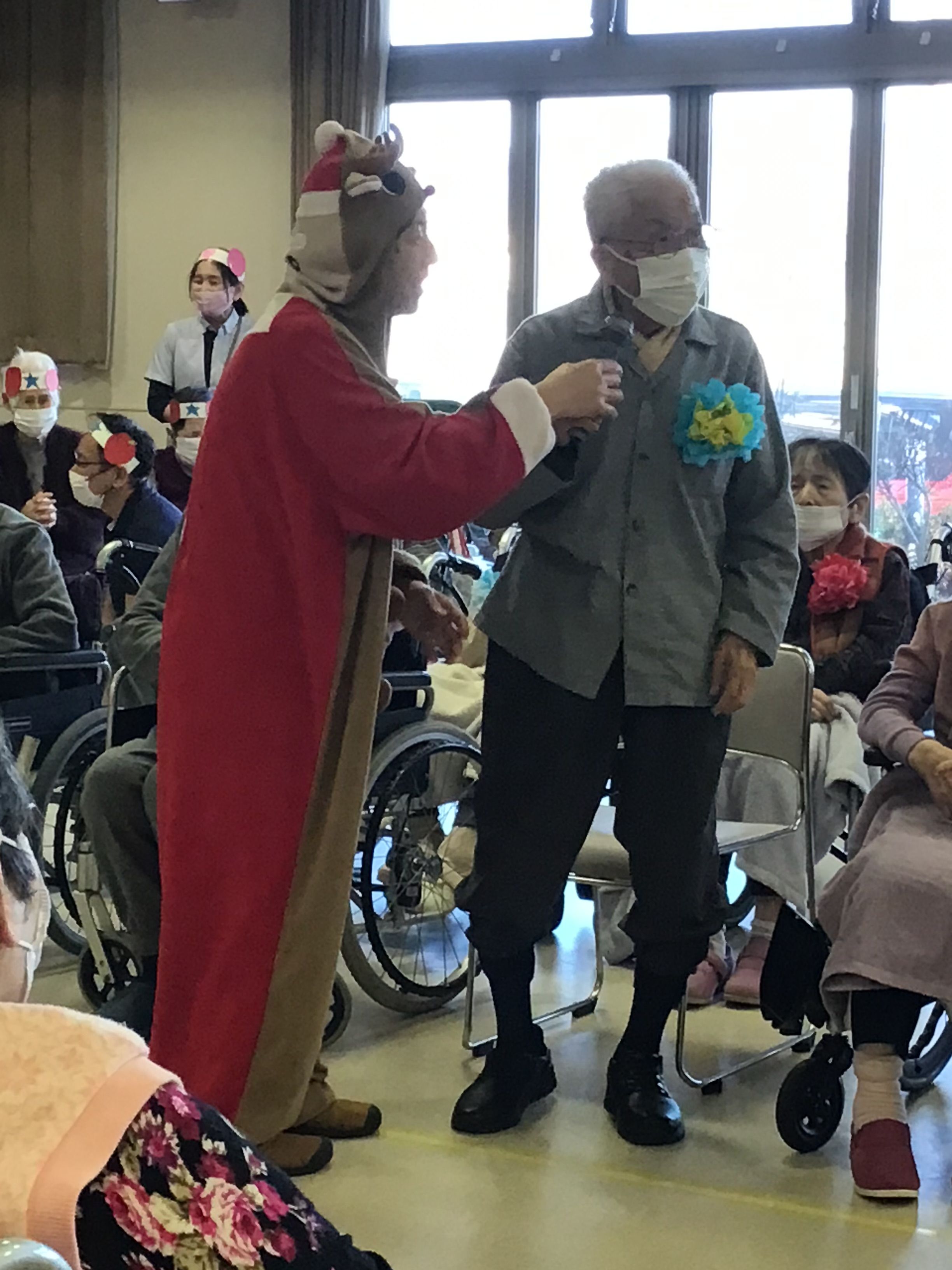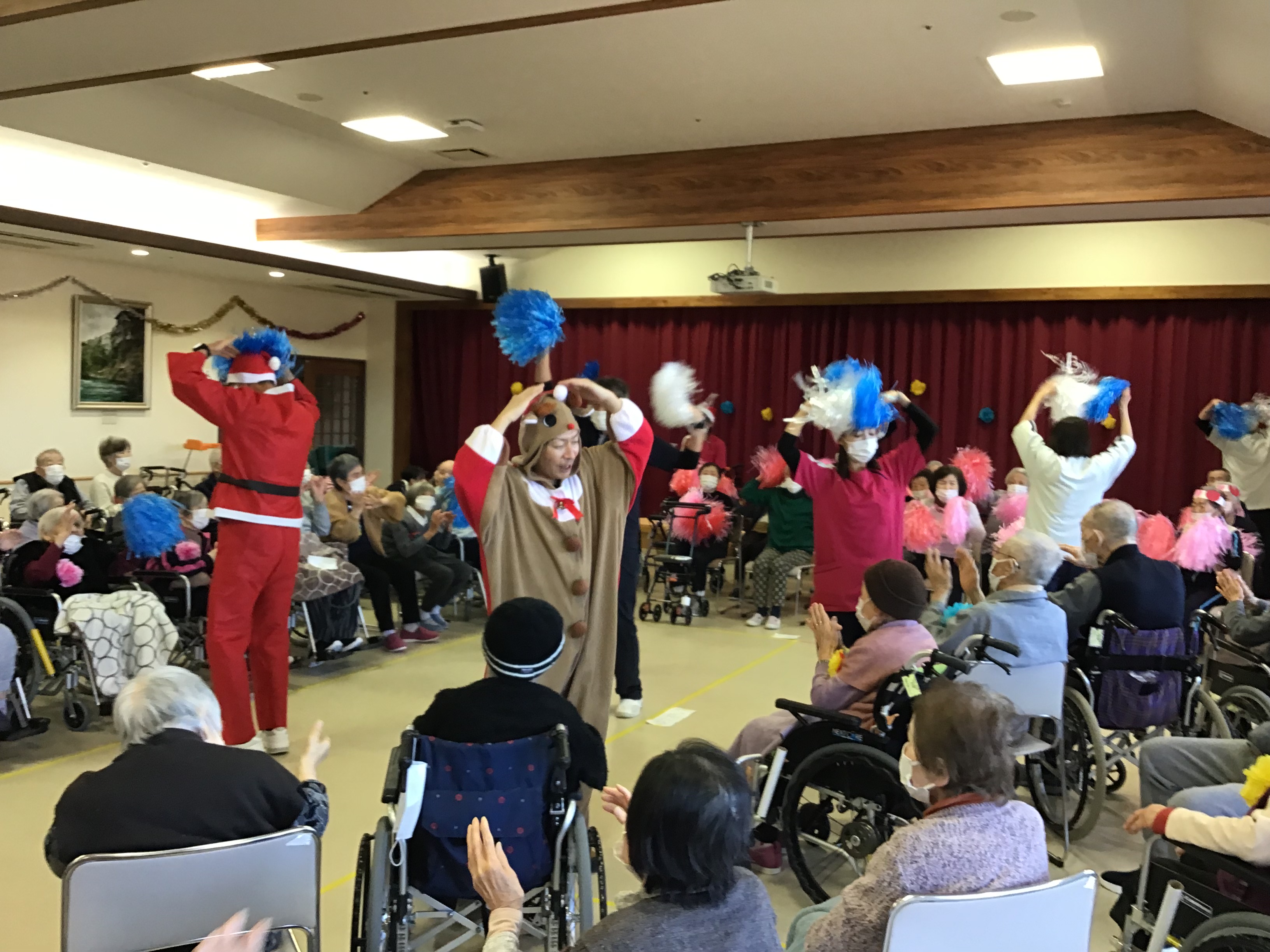 12月20日に愛全園では年忘れ会として「お楽しみ会」が開催されました。今回の企画では、各部署で歌や体操の発表会でした。