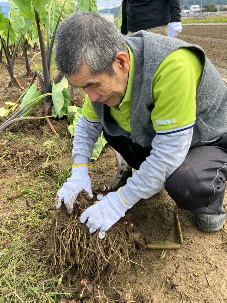カラフル 2026.01.05 里芋上手に掘れたかな? 明けましておめでとうございます!カラフルです😊 本年もよろしくお願いいたします。 昨年のある日、東藤島公民館の方、地域の方にお招きいただき、里芋掘りに参加しました🥔 里芋掘りは力の要る作業でしたが、参加した利用者様は徐々にコツをつかんで頑張っていました💪 1時間弱でこんなにたくさんの里芋が収穫できました! 貴重な体験をさせていただき、ありがとうございました✨