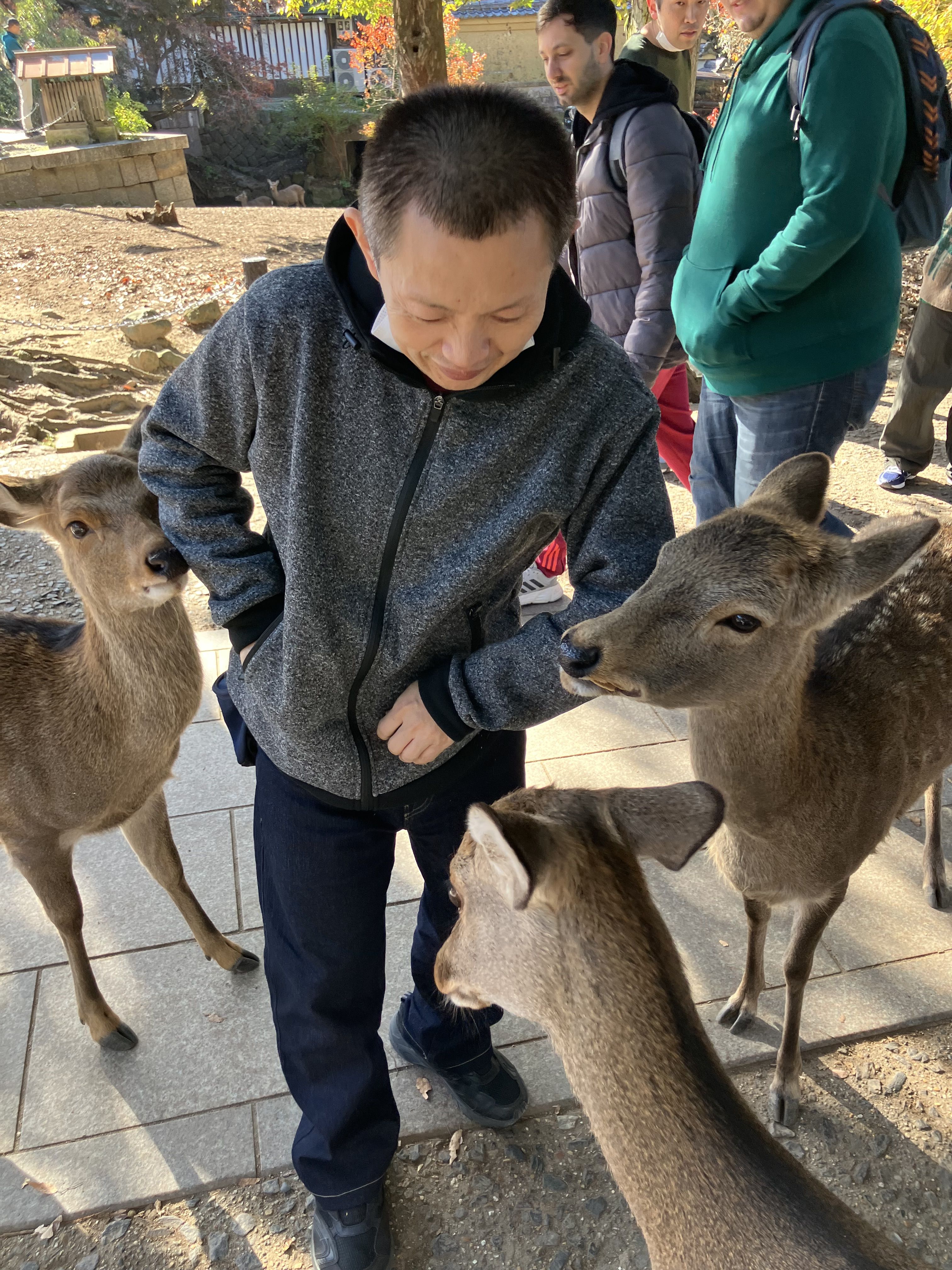 東大寺を後にしてからはしばらく奈良公園内を散策しました。シカにフレンドリーにせんべいをあげようと頑張っている利用者様やシカを怖がってしまい離れた場所で団子やソフトクリームを購入している利用者様など三者三様でした。