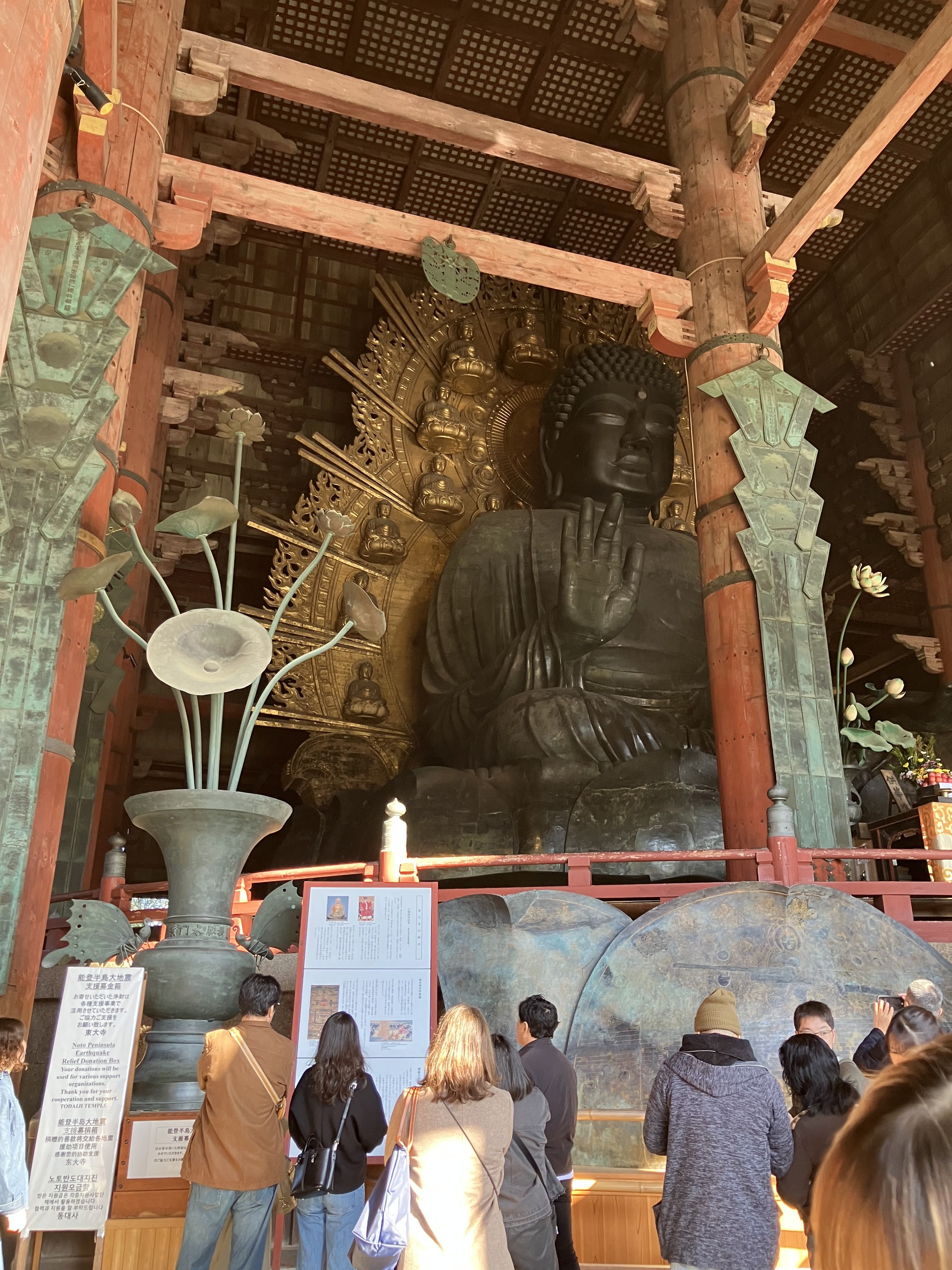大仏のいる東大寺までの道のりでもたくさんのシカとすれ違いました😮