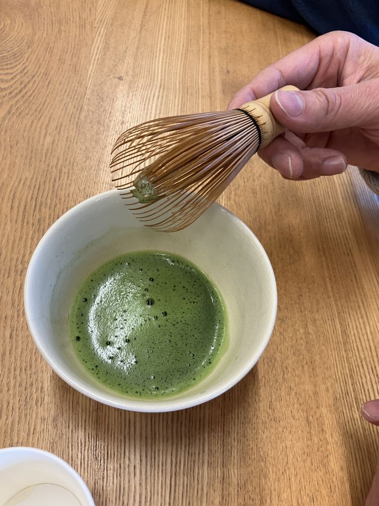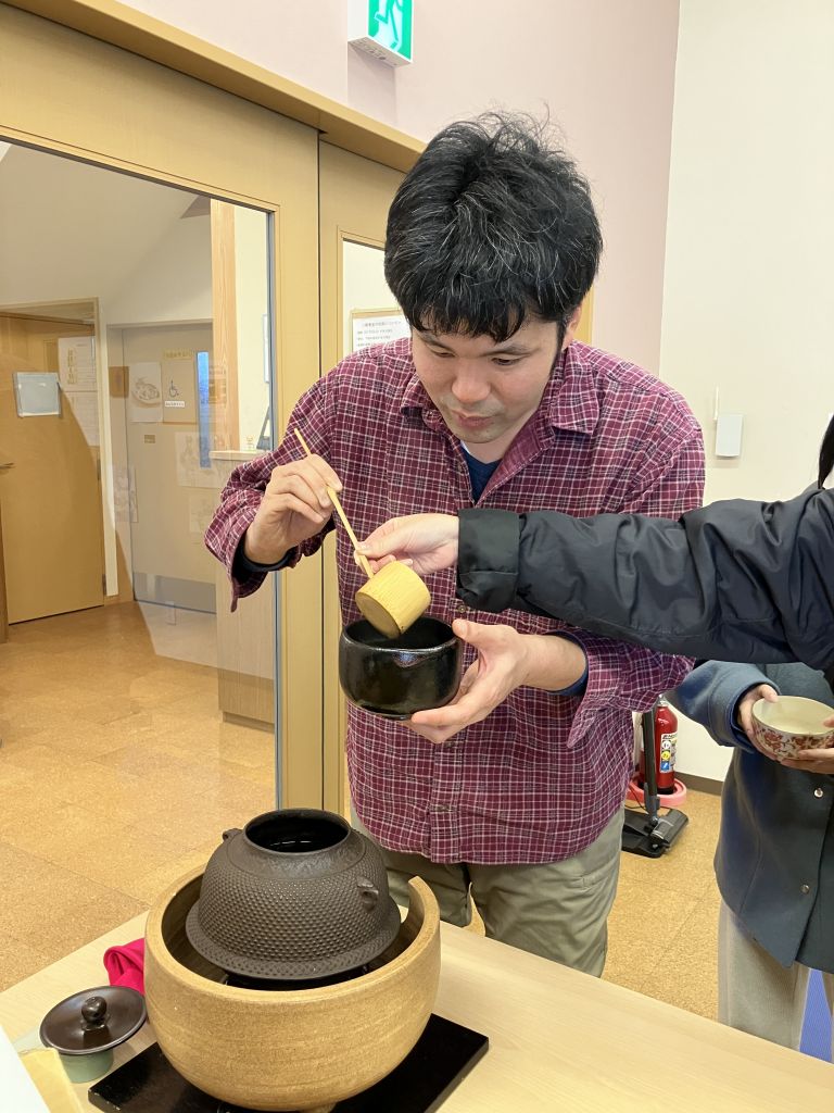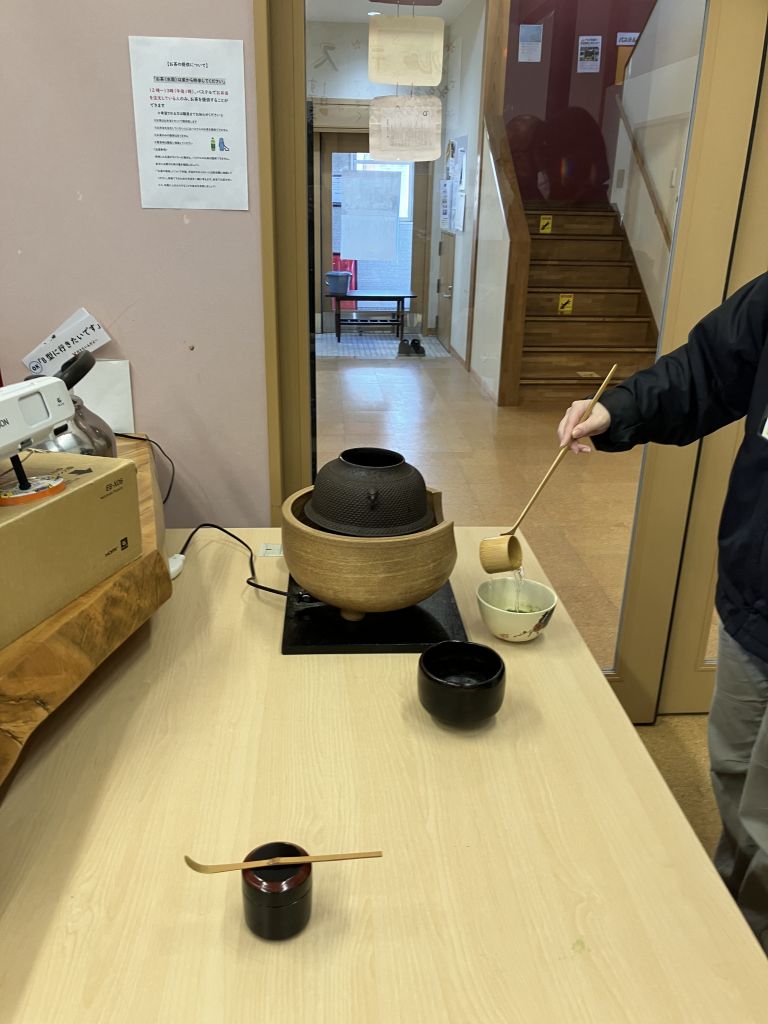 パステル 2026.01.10 ゆんたくらぶ 新年お茶くらぶ🍵 こんにちは パステルです 今日は、とてもいい天気です。快晴ですね! 今日のパステルはお茶くらぶです パステルに入ると、恐竜がおでむかえです 迫力がありますねぇ そして、 お茶くらぶの様子です いろいろな道具と ちゃわんがありますね 抹茶もあります まず、ちゃわんに抹茶を入れます 綺麗に入りましたね お湯を入れます とても上手に立てることができました 今日のお菓子は、バームクーヘンです 抹茶とバームクーヘンの相性は、ばっちりと好評でした 完食です ごちそうさまでした。 パステルお茶くらぶでした。