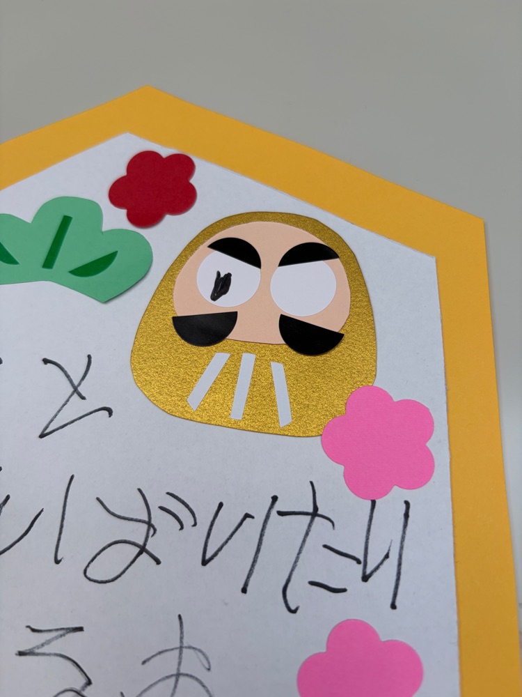 飾りのだるまには願いを込めて片目に目をつけている子もいて😊