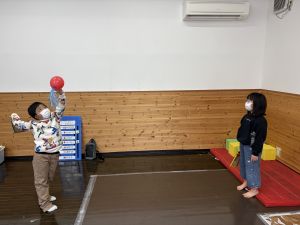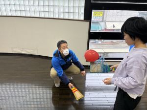 羽子板で何度も打ち合いをして羽を打つコツをつかみ、楽しそうに取り組んでいました😊