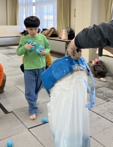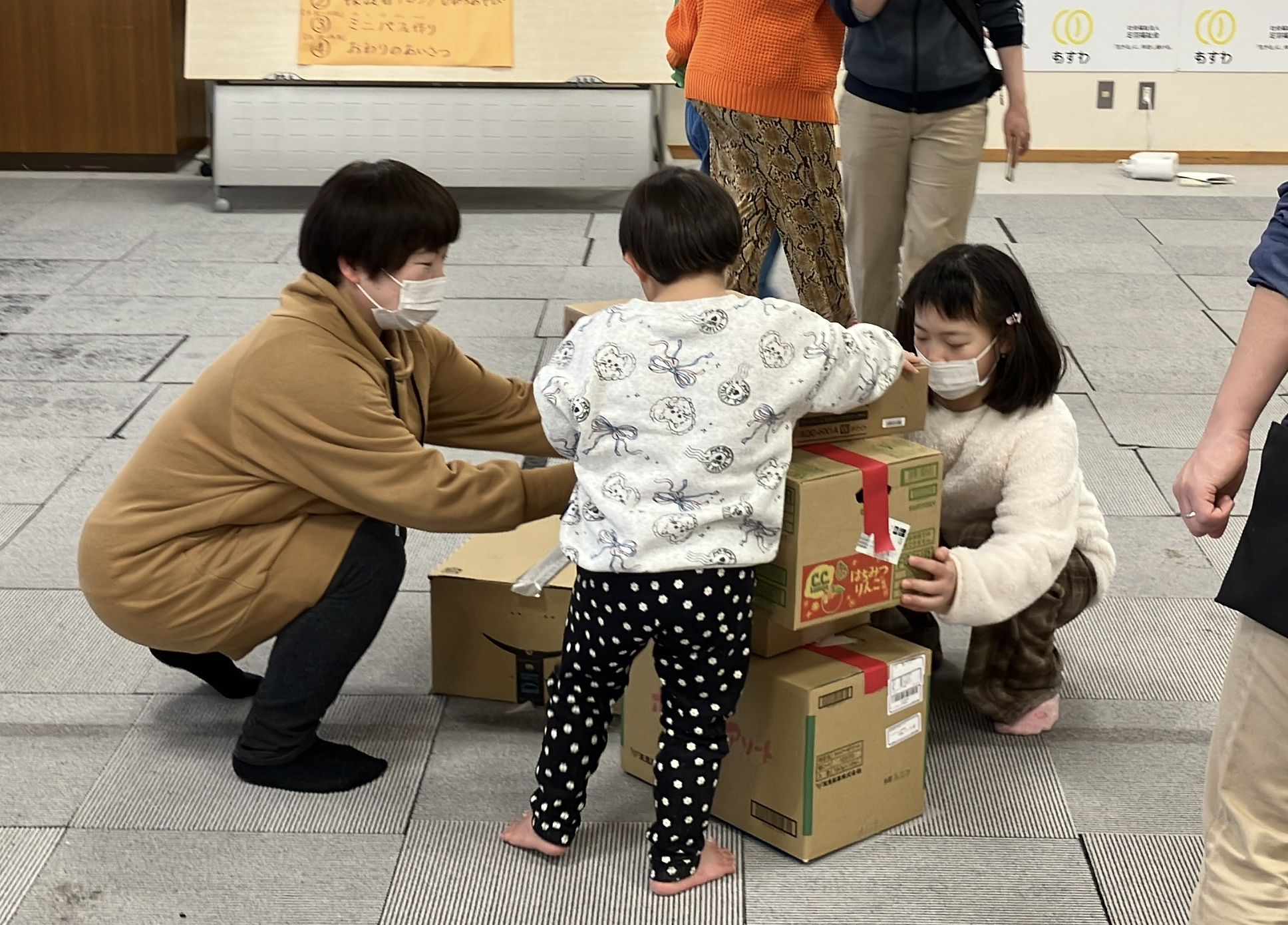 お兄さんお姉さんチームと年下チームの2つに分かれて「段ボール積み」「動く玉入れ」「サーキット」の3つの競技を行いました😊