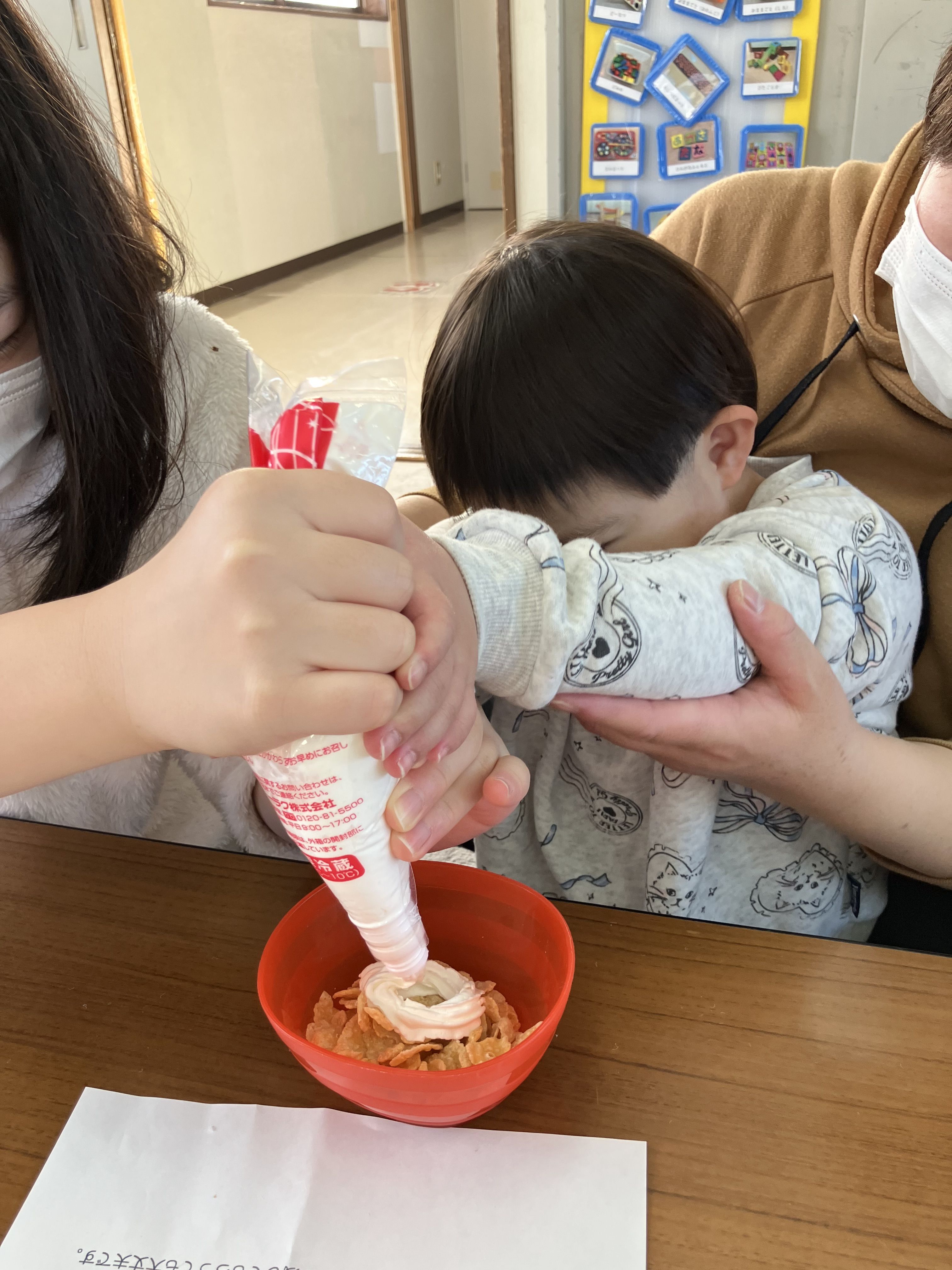 プチ運動会後はフレンズみゆきに戻り、おやつ作りでミニパフェを作りました💛