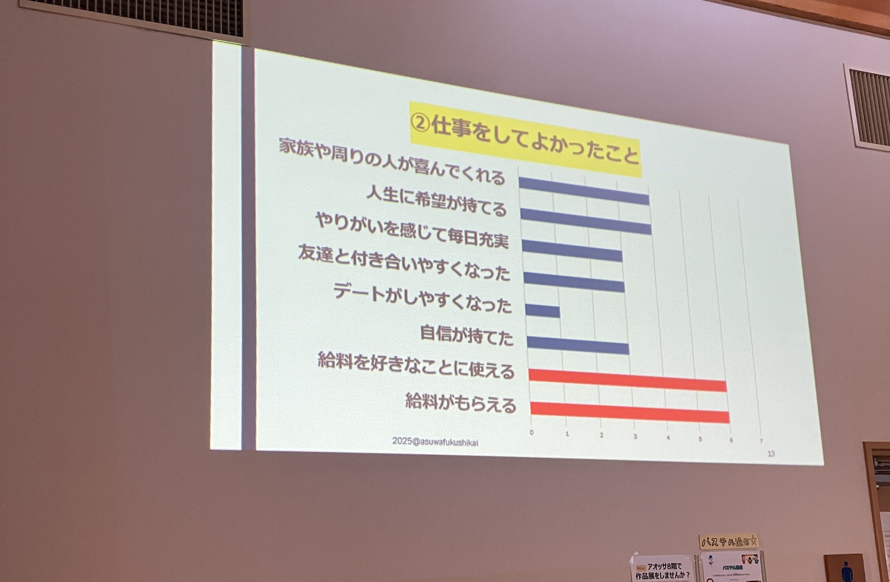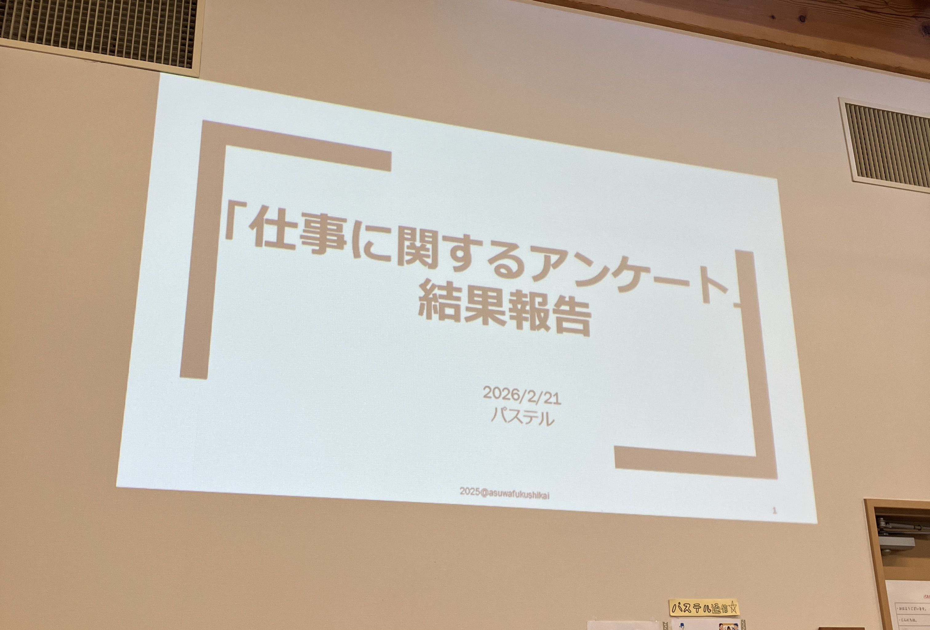 パステル 2026.02.21 パステル地域公開講座 こんにちは パステルです 本日は「やっぱり仕事だ!」という題材で公開講座を行いました パステル利用者さま、就労者さまにアンケートを取りました 就労者の方をお呼びしてとても貴重なお話を聞きました みなさん真剣にお話を聞いていますね グループワークも行いました 「仕事をしたいけど人間関係が心配」「あいさつができないとだめ?」など仕事に対する不安をがあるという一方、 就職者の方からは「他の人の頑張りが意欲につながる!」という頼もしい意見が聞かれました