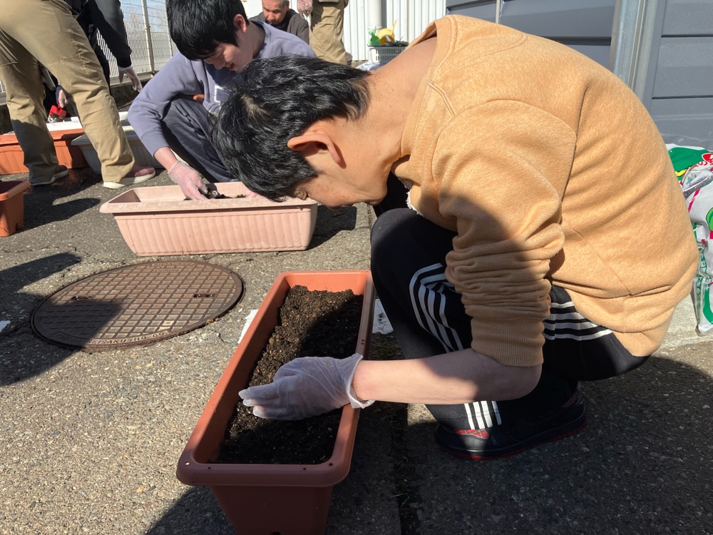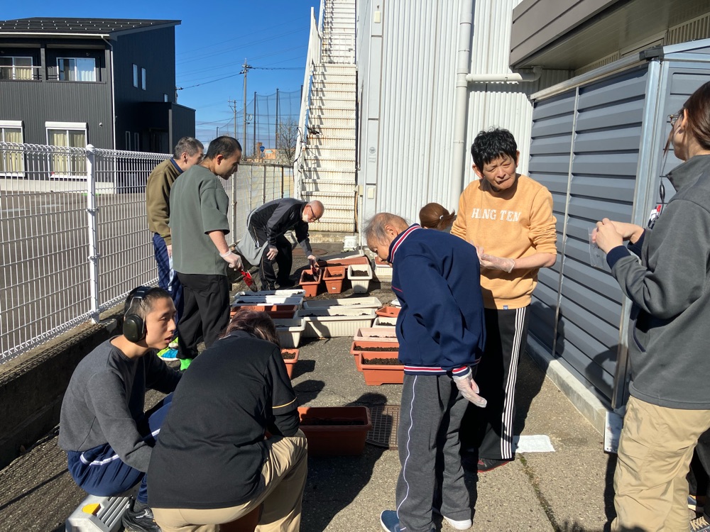 カラフル 2026.03.31 クリーンアップ&フラワー大作戦! こんにちは!カラフルです🌈 昨年の秋、利用者様のみなさまとパンジー、ビオラ、ノースポール、キンセンカの4種類の花の種植えをしました🏵️ 雪が溶け、その時の芽が伸びてきました🌱 そして先日、追分口駅にプランターを設置させていただきました😊 それぞれどのような花を咲かせるのか、楽しみですね☺️