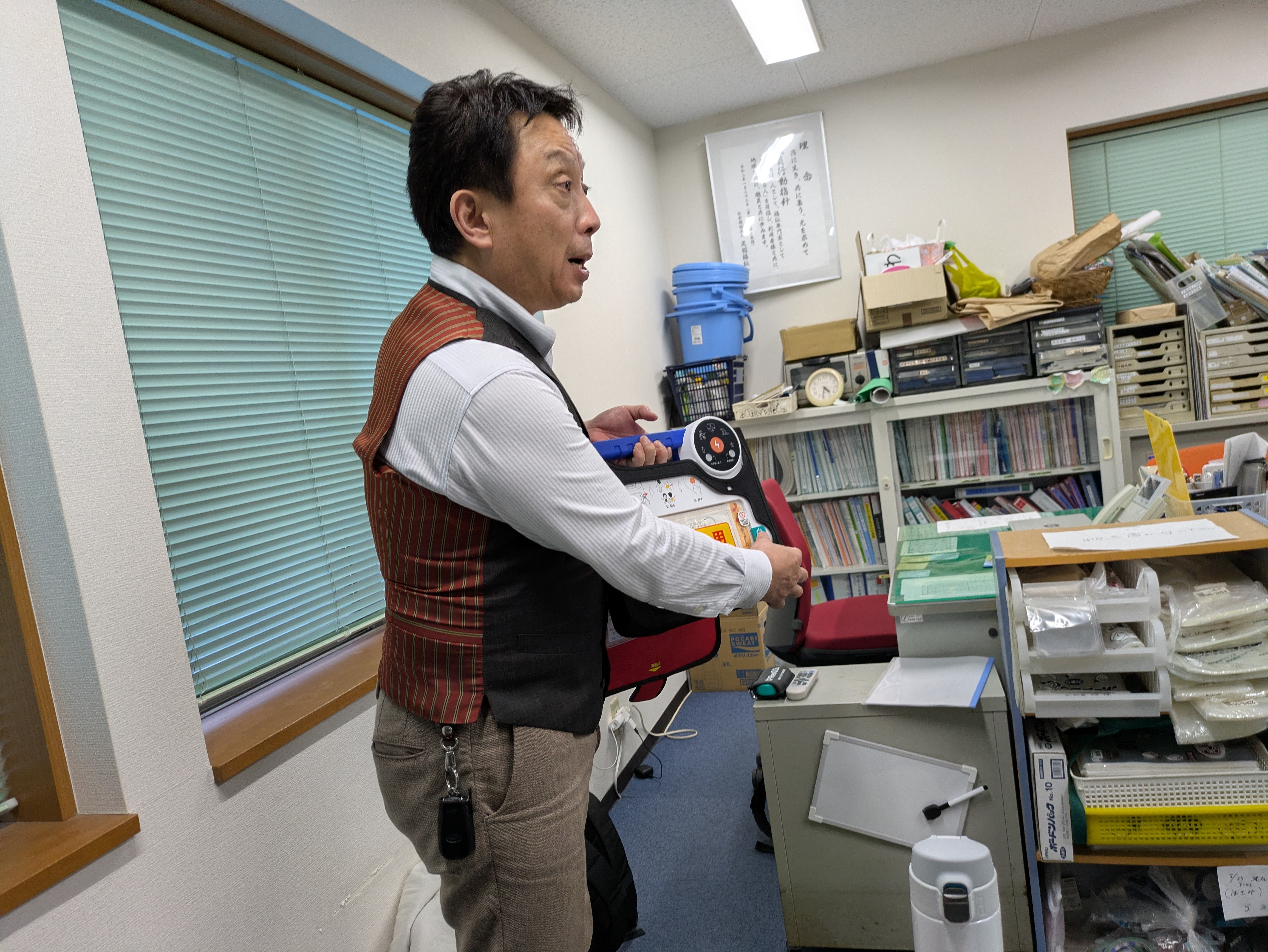 自分の胸骨圧迫の強さが適切なのか、LEDの色や音声ガイドでアドバイスがあるなど、可視化され、音声で評価されることでその場で自己修正がしやすく、為になったと大好評でした。